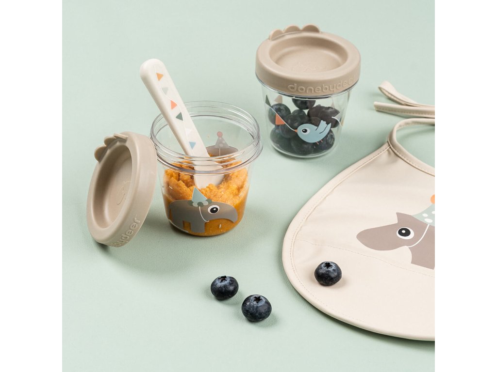 Použijte tuto praktickou sadu dvou nádob na dětskou výživu a nechte jelení kamarády bedlivě dohlížet na dobroty uvnitř. Jsou perfektní na nošení svačin do školky i mimo ni, nebo na uložení domácí kaše do mrazáku. Průsvitné nádoby jsou stohovatelné a snadno se skladují při používání i při uskladnění, a díky šroubovacímu víčku jsou nepropustné a vzduchotěsné. Nechte své ratolesti vychutnat si malé jídlo s našimi jeleními přáteli. Dózy na dětskou výživu mají různé potisky.Doplňkové parametry