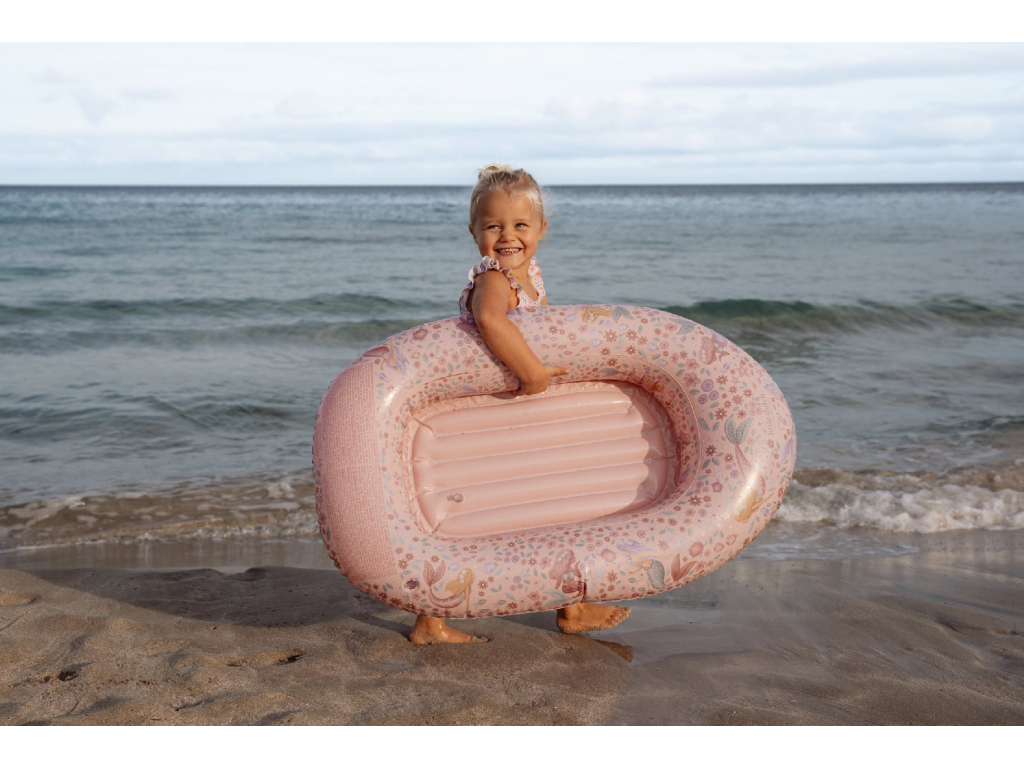 Nafukovací člun do vody s krásným potiskem motivů mořské víly a květin. Člun snadno nafouknete a když jej zrovna nepoužíváte, snadno jej vypustíte a složíte do kompaktního tvaru. Člun je součástí designové kolekce Little Dutch Dreamy Mermaid. Rozměry: 100 x 67 cm Nosnost: 18 kg Vhodné pro děti od 3 let.Doplňkové parametry