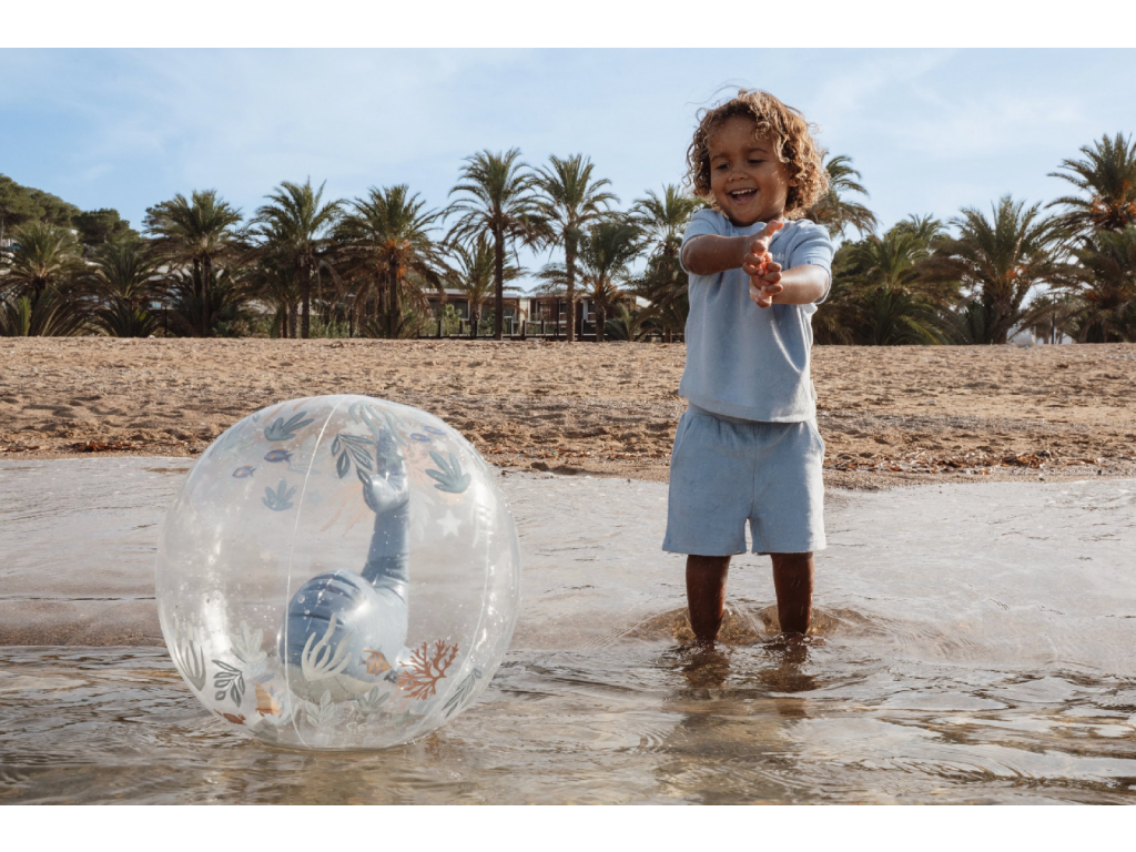 Nafukovací míč v originálním provedení s nafukovací velrybou uvnitř míče a s krásným potiskem motivů ze života pod mořskou hladinou využijí vaše děti pro hraní na zahradě i na pláži u moře. Míč je součástí designové kolekce Little Dutch Ocean World. Průměr míče: 35 cm Vhodné pro děti od 2 let.Doplňkové parametry