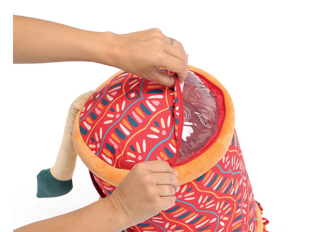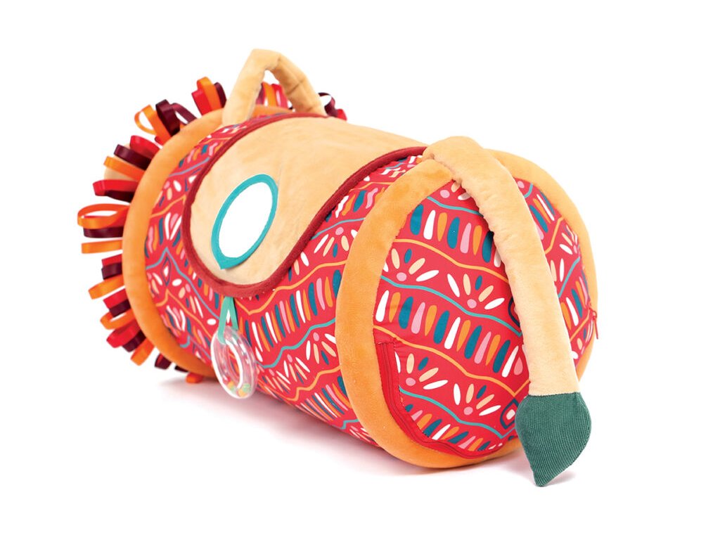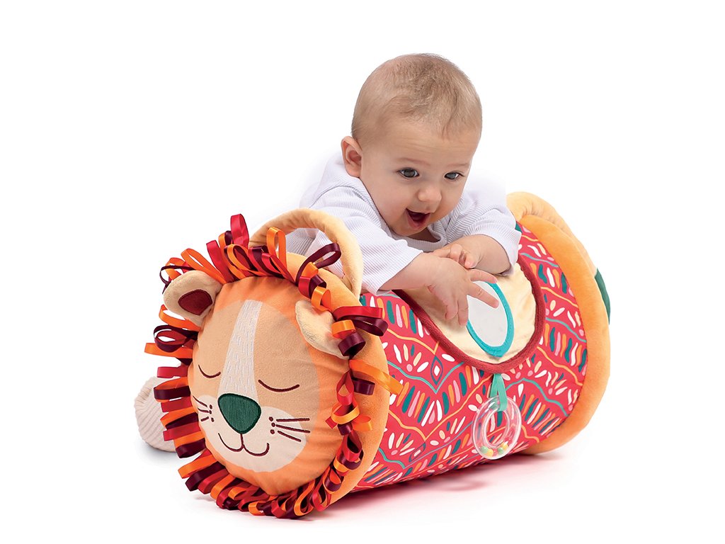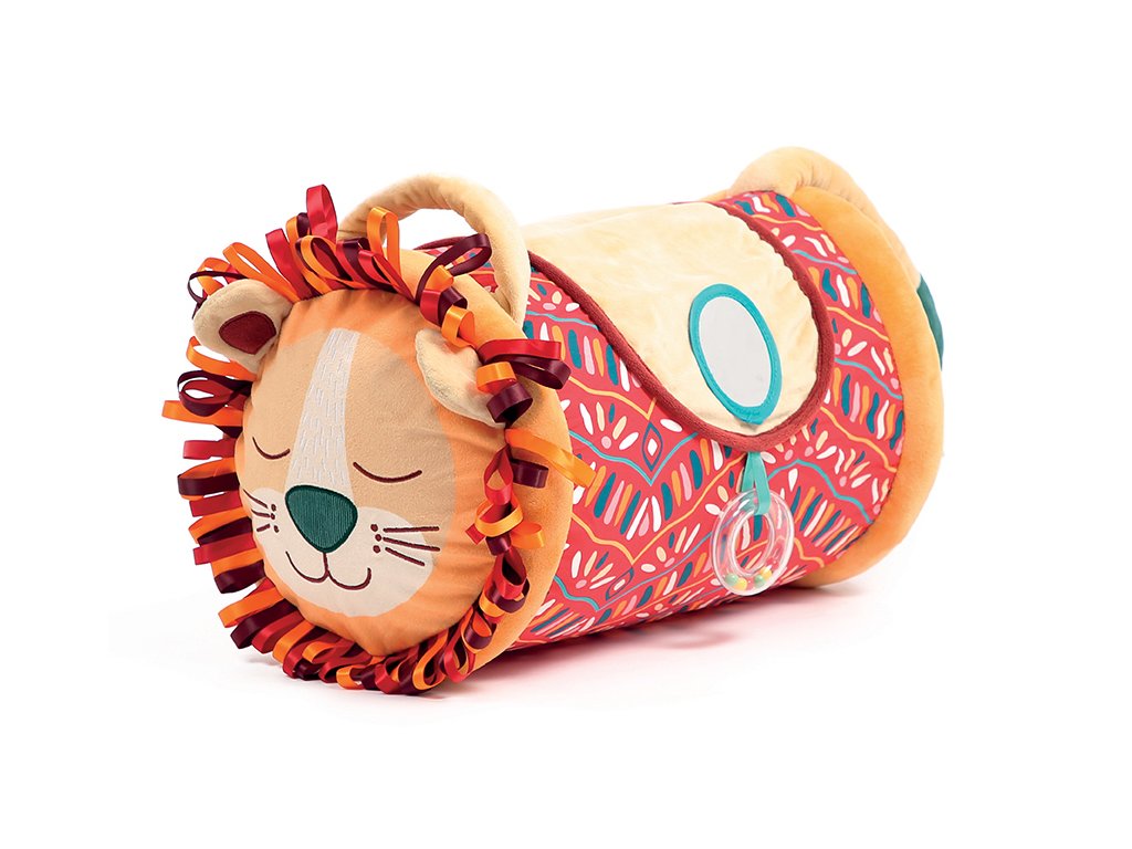 Originální hračka ve tvaru válce s množstvím aktivit pro zkoumání zabaví dítě a současně podněcuje rozvoj jeho smyslů a motorických dovedností. Uvnitř skrývá cinkající míčky, textilní potah nabízí různorodé textury, bezpečné zrcátko i chrastítko. Vnitřní část je nafukovací, takže válec je lehoučký a dítě ho dokáže snadno zvednout. Snímatelný textilní potah je možné prát v pračce. Rozměry: 45 x 27 x 27 cm Vhodné pro děti od 6 měsíců.Doplňkové parametry