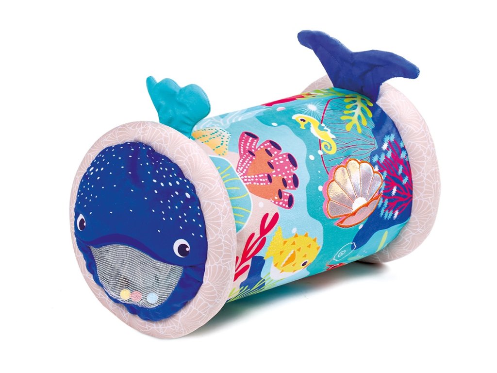Originální hračka ve tvaru válce s množstvím aktivit pro zkoumání zabaví dítě a současně podněcuje rozvoj jeho smyslů a motorických dovedností. Uvnitř skrývá cinkající míčky, textilní potah s krásnými motivy ze života pod mořskou hladinou nabízí různorodé textury, bezpečné zrcátko i chrastítko. Dítě se o válec může opírat, lézt přes něj, přetáčet ho nebo ho „dohánět“ při plazení. Vnitřní část je nafukovací, takže válec je lehoučký a dítě ho dokáže snadno zvednout. Rozměry: 45 x 27 x 27 cm Údržba: Otírejte vlhkým hadříkem Vhodné pro děti od 6 měsíců.Doplňkové parametry
