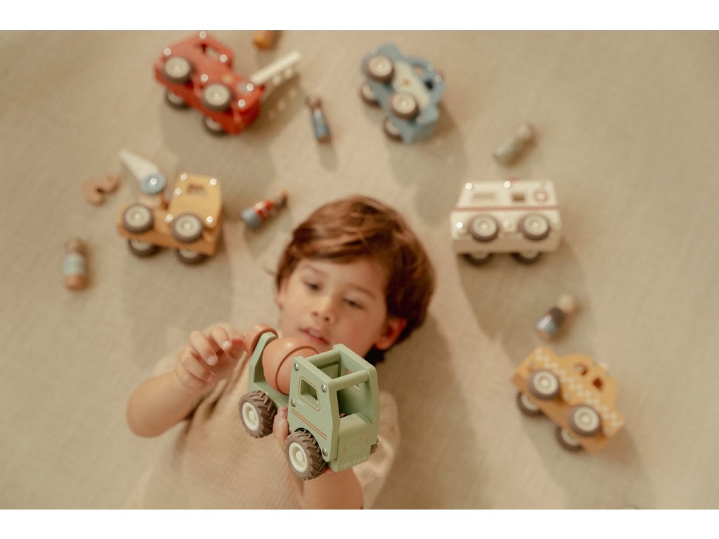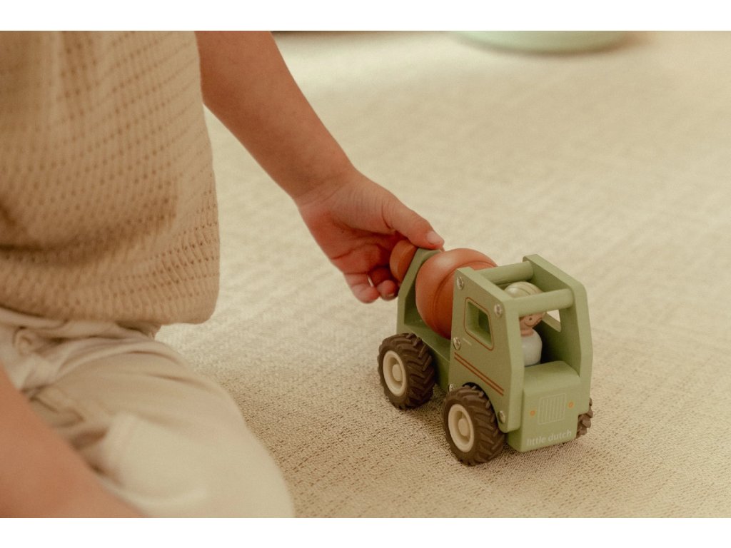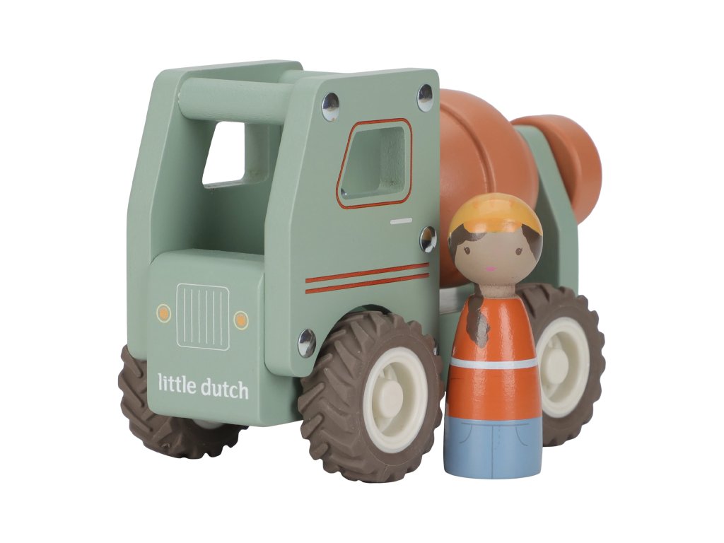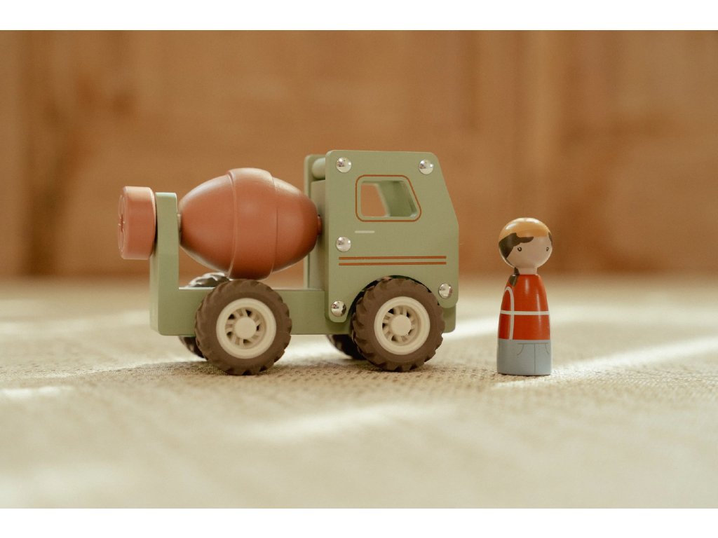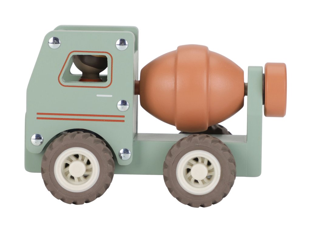 Míchat a stavět! Tento dřevěný míchač betonu je připraven na práci na stavbě. Při jízdě se buben míchačky otáčí, takže hra vypadá jako skutečná. Robustní náklaďák s gumovými pneumatikami zajišťuje hladkou a tichou jízdu. Součástí hračky je dřevěná figurka stavbyvedoucího, která dodá hře ještě více zábavy a realismu. Míchačku můžete kombinovat s dalšími stavebními vozidly – například s nakladačem, autojeřábem nebo sklápěčkou – pro kompletní stavební dobrodružství. Vyrobeno z odolného FSC certifikovaného dřeva. Vhodné pro děti od 18 měsíců.Doplňkové parametry
