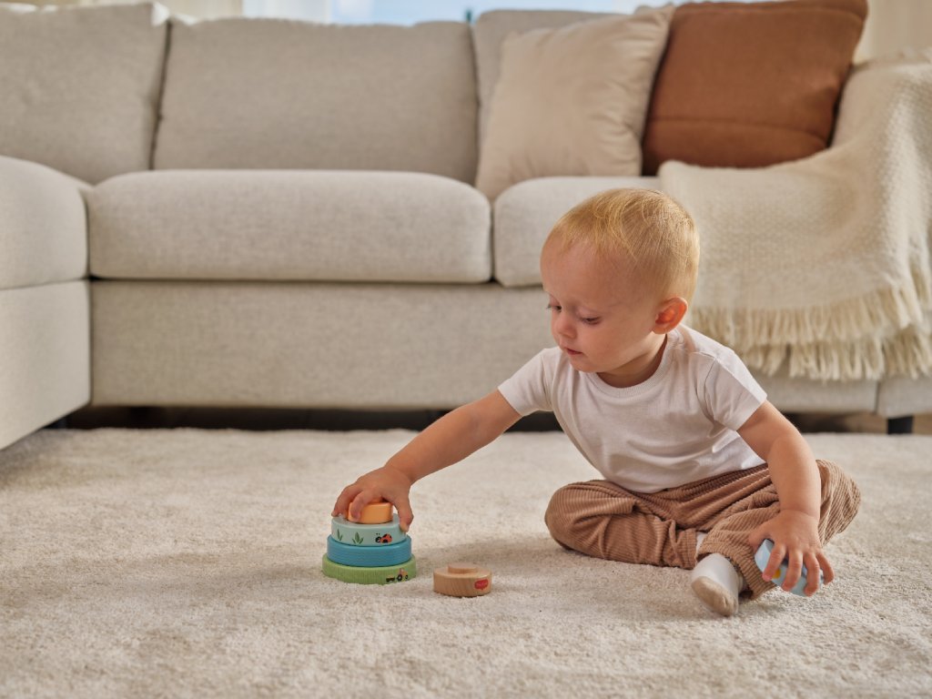 Dřevěné nasazovací kroužky Tiny Love nabízí různé možnosti hraní - děti je mohou nasazovat a stavět do věže, třídit podle velikosti, kutálet s nimi a postupně objevovat a rozlišovat barvy, velikosti a jednoduché souvislosti. Kroužky s krásným potiskem motivů ze života na farmě jsou lehké a dobře se drží i malými dětskými ručičkami. Hračka přirozeně rozvíjí jemnou motoriku, koordinaci ruka–oko i první logické myšlení. Hračka pomáhá rozvíjet jemnou motoriku, jednotlivé smysly, emoční inteligenci i kreativitu dítěte. 6 barevných dřevěných kroužků je vyrobeno z kvalitního dřeva z odpovědně obhospodařovaných lesů. Rozměry: 13 x 10 x 10 cm Vhodné pro děti od 6 měsíců.Doplňkové parametry