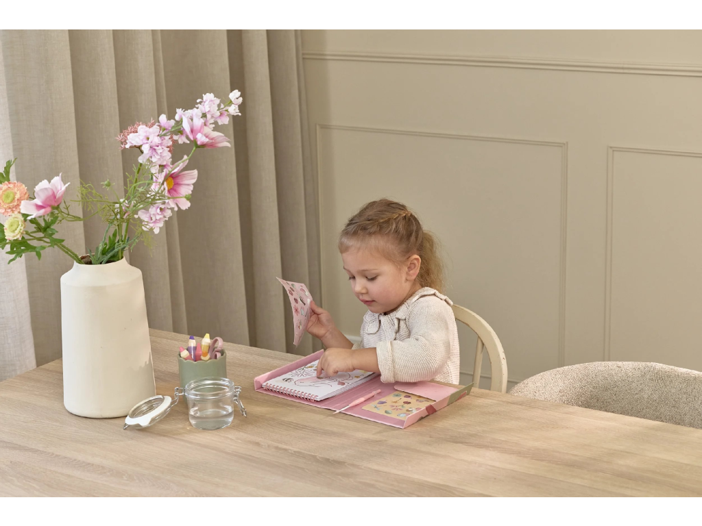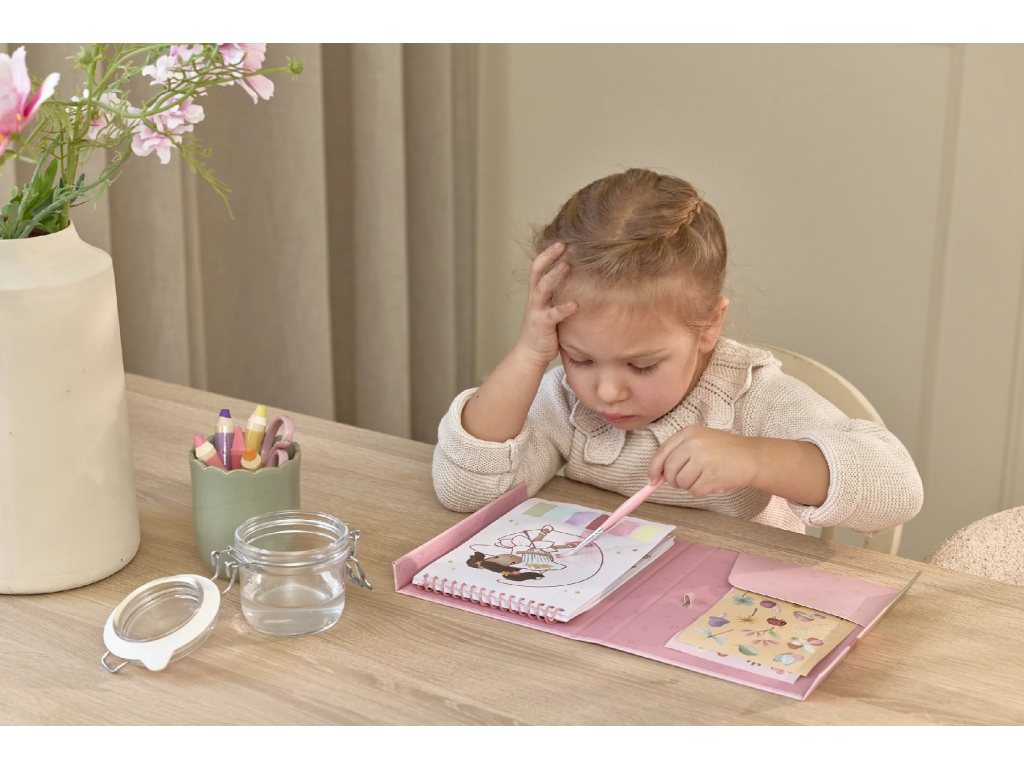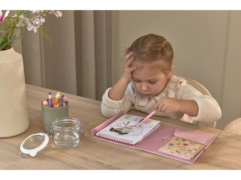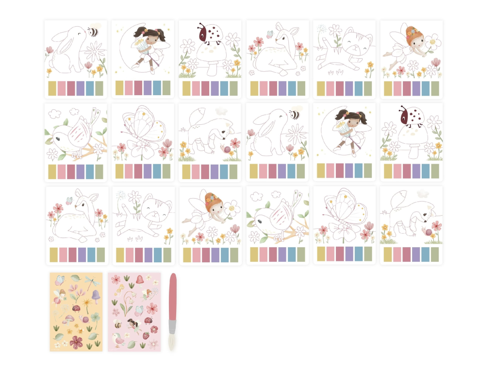Krásné omalovánky na silném papíru obsahují 18 stránek s jednoduchými obrázky pohádkových víl, zvířátek a květin k vybarvování. Každá stránka nabízí vlastní paletu akvarelových barev pro vybarvování štětcem, takže použití je velmi jednoduché. Pro větší zábavu jsou součástí i dva archy krásných barevných samolepek pro dotvoření obrázků. Díky pevnému obalu s magnetickým zapínáním a poutkem na štětec je vše úhledně pohromadě. Spirála ve hřbetu umožňuje snadné otáčení stránek omalovánek. Omalovánky nabízí skvělý způsob, jak rozvíjet jemnou motoriku i představivost dítěte. Vhodné pro děti od 3 let.Doplňkové parametry