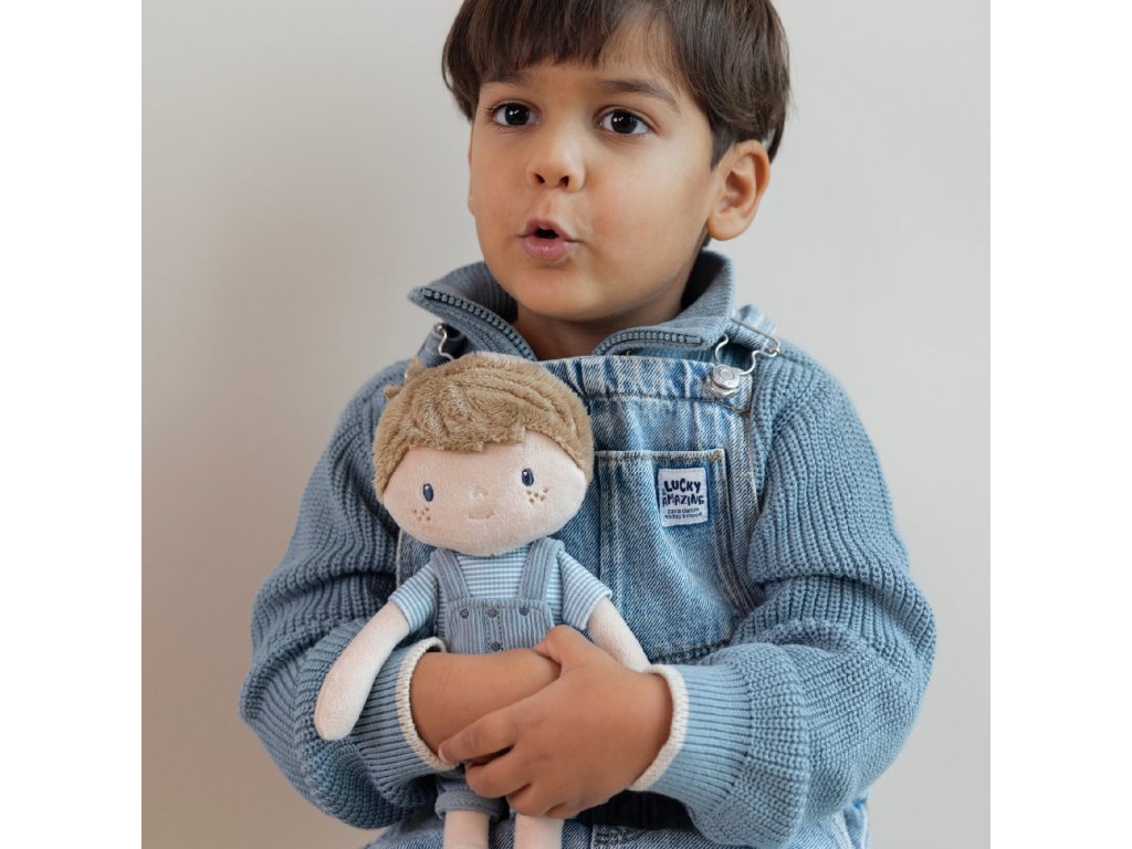Originální plyšová panenka v podobě chlapečka Jima v manšestrových kalhotách s laclem. Panenka z měkkého jemného materiálu je ideální jako první panenka pro vaše dítě, je vhodná na hraní i mazlení a bude se s ní i krásně usínat!