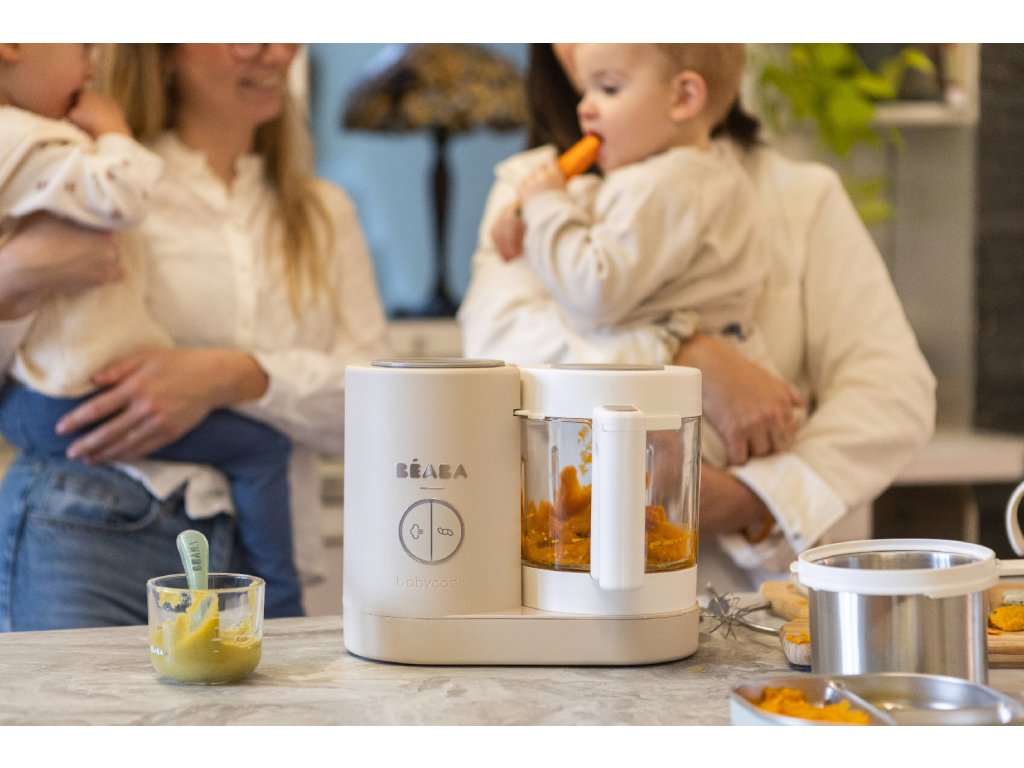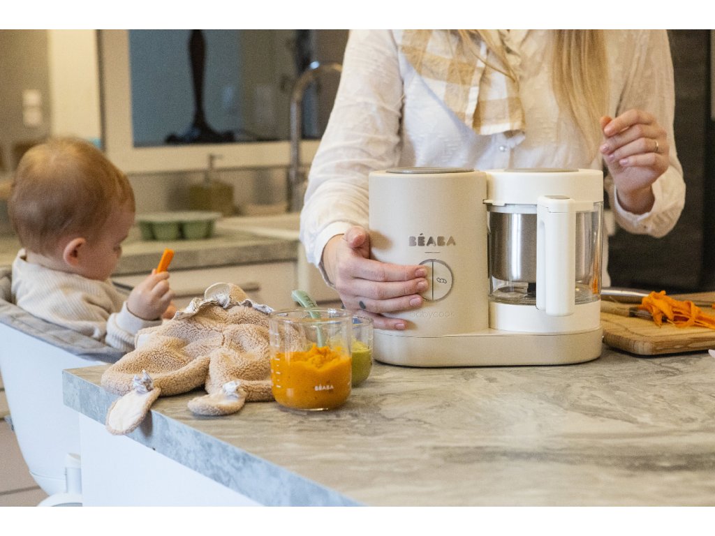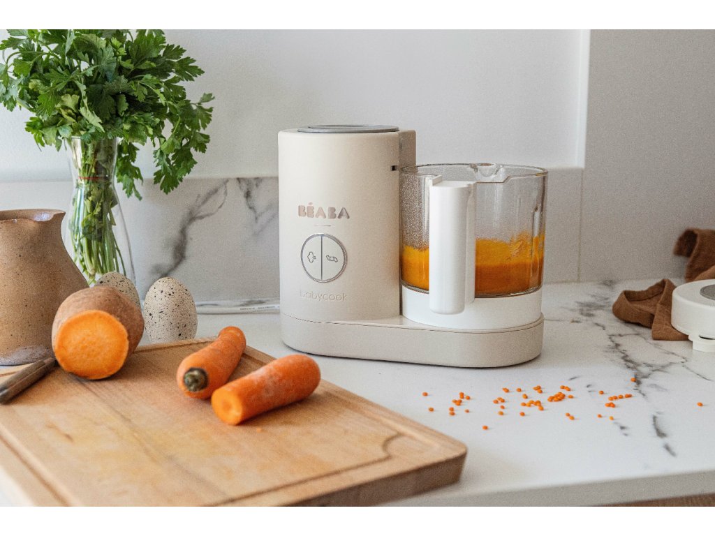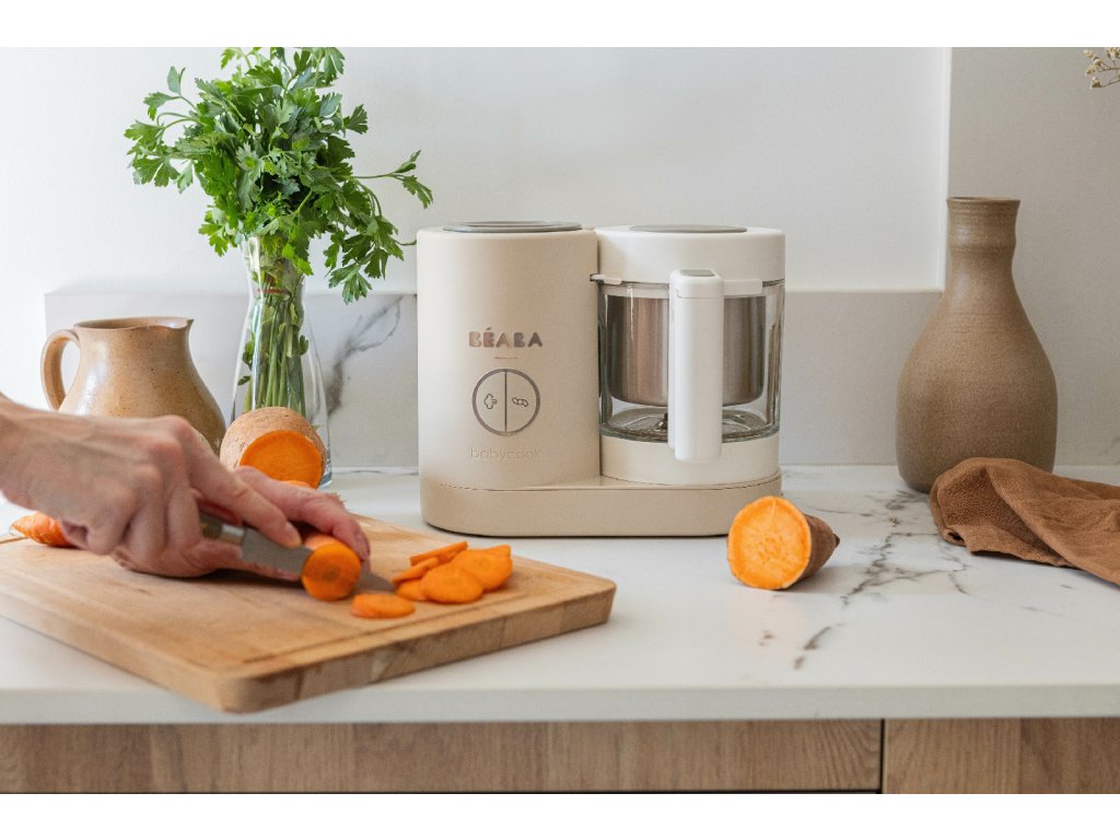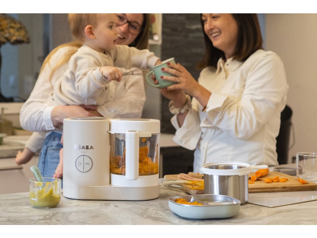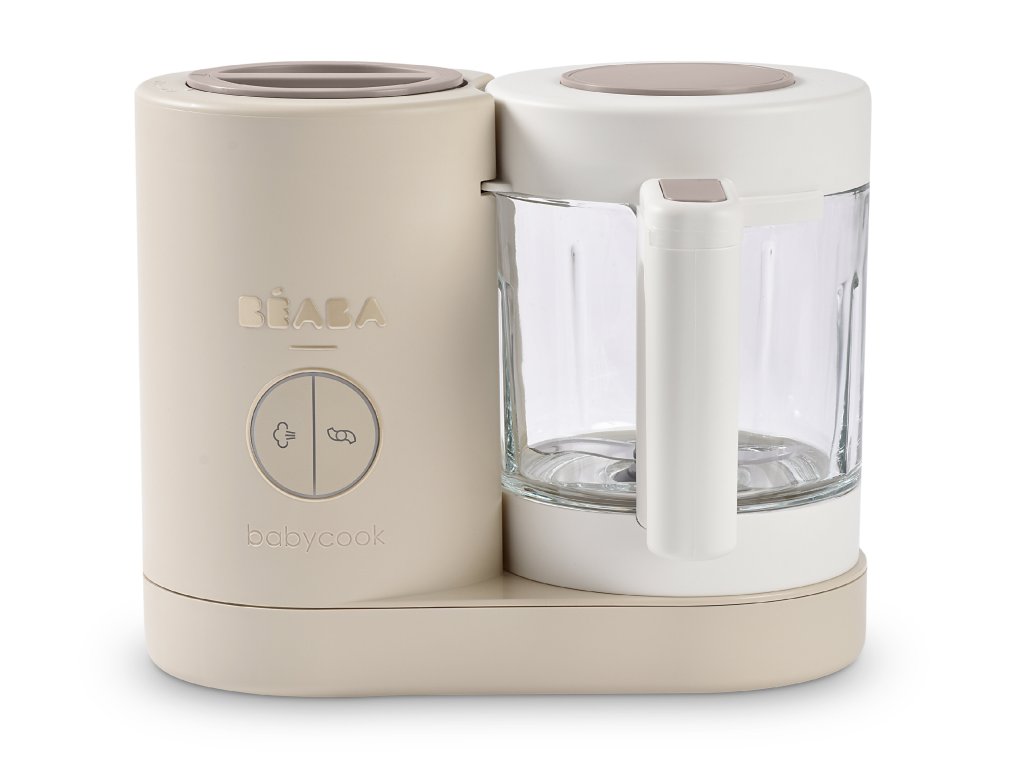 Skvělou pomoc při přípravě pokrmů pro děti představuje parní hrnec a mixér v jednom Babycook® Beaba. Babycook® umožňuje zdravě uvařit pokrm v páře a následně ho ve stejné nádobě rozmixovat. Zcela nový model Babycook® NEO má skleněnou nádobu s objemem 1250 ml a nerezový vkládací košík s objemem 1000 ml. Nerezový zásobník na vodu s vnitřní ryskou a se širokým vstupním otvorem usnadňuje plnění vodou i čištění zásobníku. Příprava jídla v Babycooku je velmi snadná – pouze do něj nalijete vodu, do vkládacího košíku vložíte na kousky nakrájené suroviny (zeleninu, maso atd.) a přístroj zapnete. Po skončení vaření (trvá nejdéle 15 min) se Babycook sám vypne. Chcete-li následně pokrm rozmixovat, pouze vysypete uvařené suroviny z vkládacího košíku do průhledné hlavní nádoby a rozmixujete (podle věku dítěte na jemnou hladkou kaši, nebo na hrubší strukturu s kousky). Když se dítě naučí dobře kousat, dá se Babycook® dále používat pro zdravé vaření v páře i bez mixování. Přístroj je možné použít i pro rozmrazování a ohřívání dětské stravy. Příkon: 400 WDoplňkové parametry