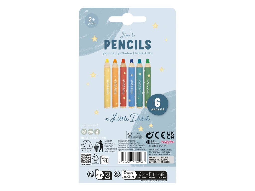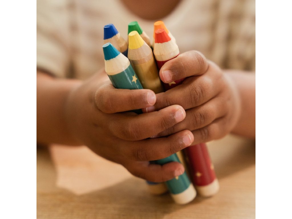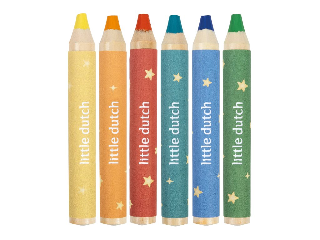 Nechte své dítě rozvinout fantazii s touto Little Dutch sadou 6 krátkých silnějších pastelek v jemných odstínech. Jsou ideální pro malé ručičky, které se učí kreslit, malovat a objevovat barvy. Pastelky podporují kreativitu, rozvíjejí jemnou motoriku a díky svému tvaru se snadno drží. Skvěle doplňují ostatní výtvarné potřeby Little Dutch a přinášejí hodiny zábavy při tvoření i společném kreslení. Vhodné pro děti od 2 let.Doplňkové parametry