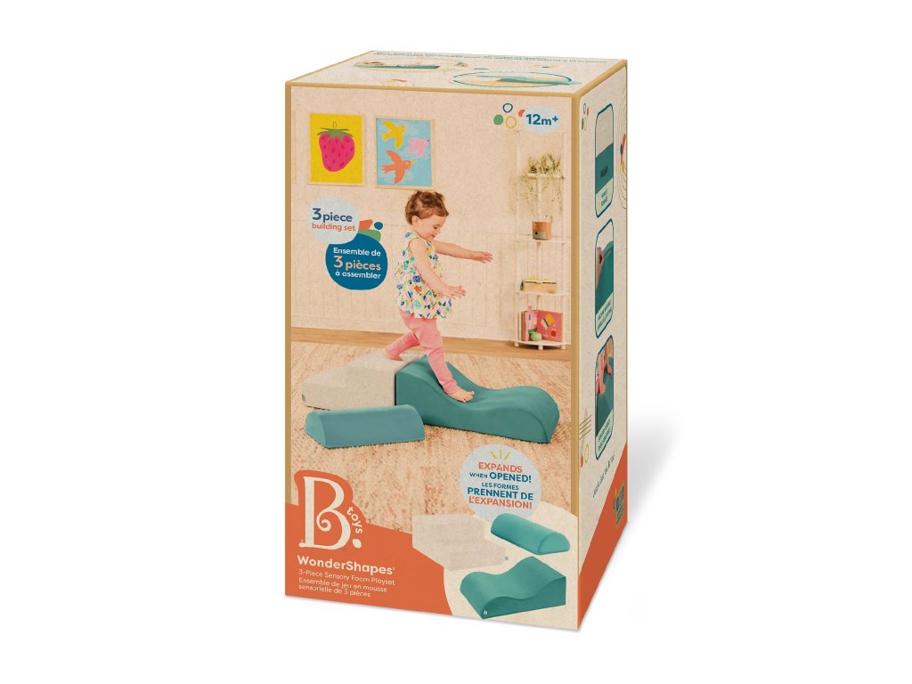 3-dílná sada pěnových tvarů WonderShapes promění každý dětský pokoj nebo hernu v zábavné hřiště plné fantazie. Obsahuje schůdky, vlnitou rampu a půlválec – ideální pro tvorbu překážkových drah, prolézaček i kreativních staveb. Po rozbalení se jednotlivé díly samy roztáhnou do plné velikosti – jako kouzlem! Díky madlům si děti mohou své hřiště přestavovat dle chuti, zatímco měkké potahy zajistí pohodlí i bezpečnost. Podporuje hrubou motoriku, rovnováhu a aktivní pohyb. Rozměry: schůdky 41 x 41 x 21 cm, rampa 61 x 41 x 21 cm, půlválec 41 x 21 x 10 cm Snímatelné potahy je možné prát v pračce. Vhodné pro děti od 12 měsíců.Doplňkové parametry