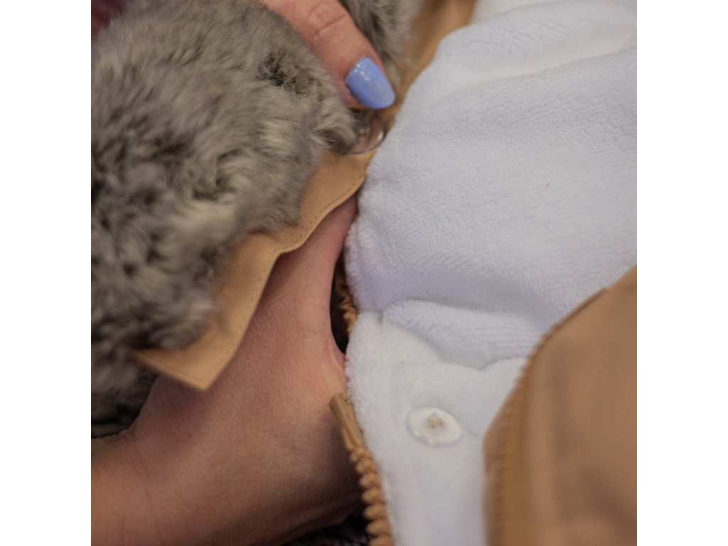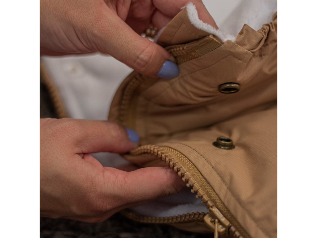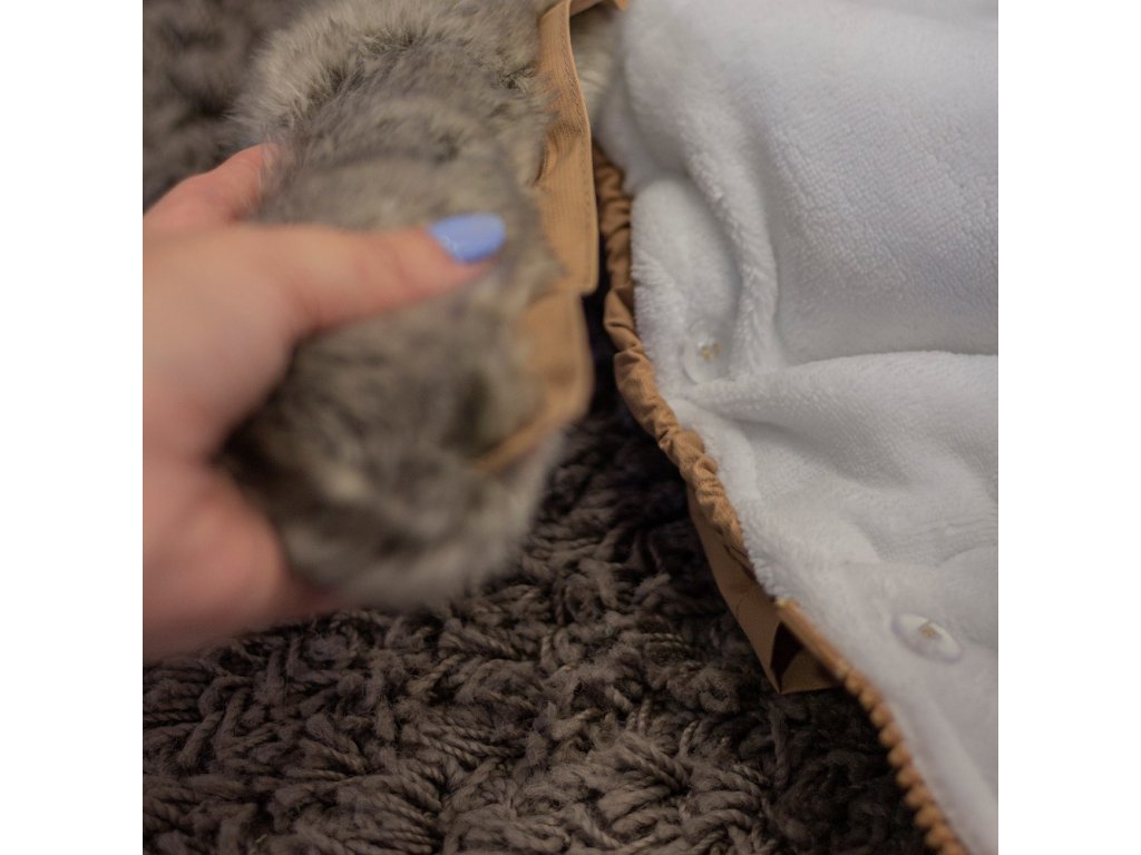 - Kožešinka se na fusak přichytává pomocí knoflíků a lze velmi jednoduše ji odejmout a fusak vyprat při teplotě 30°C.
