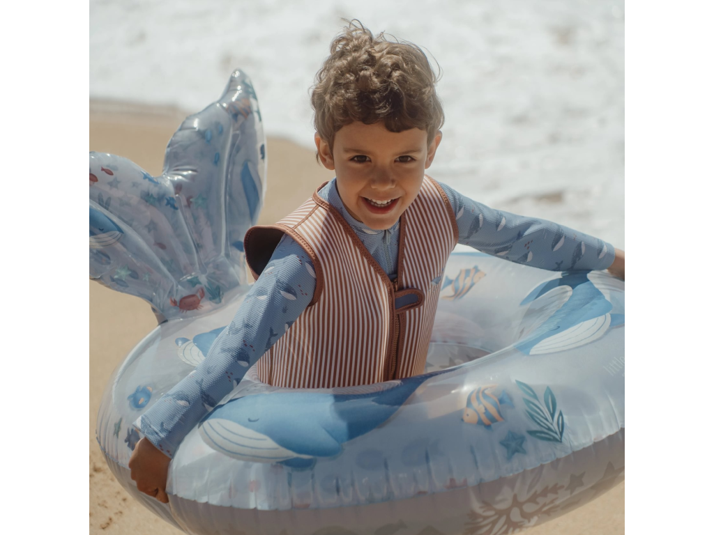 Plavky z UV ochranné tkaniny s krásným potiskem chrání vaše dítě před sluncem při koupání u moře i doma na zahradě. Ať už vaše děti milují skákání ve vlnách, koupání v bazénu nebo si rády staví hrady z písku, v těchto plavkách si mohou bezstarostně užívat celý den. Složení: 94% recyklovaný nylon, 6% spandex Ochranný faktor: UPF 40+ Při pobytu na slunci používejte pro dítě ochranné opalovací krémy. Možno prát v pračce na 30°C. Po každém použití plavky propláchněte v čisté studené vodě.Doplňkové parametry