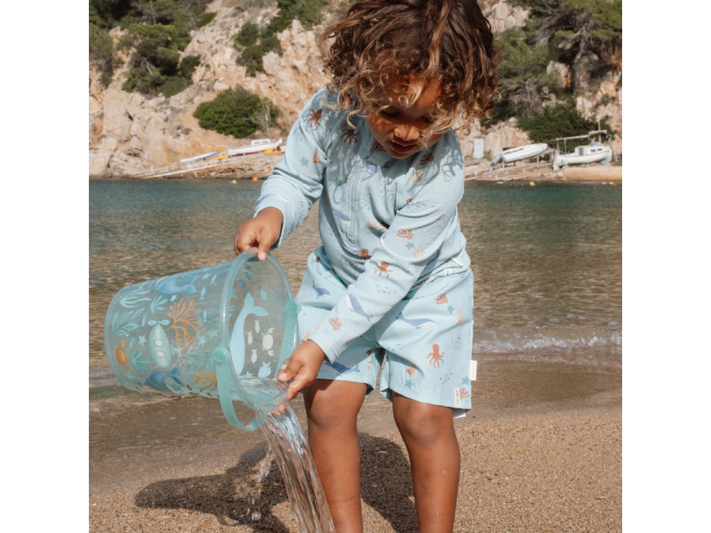 Plavky s krásným potiskem chrání vaše dítě před sluncem při koupání u moře i doma na zahradě. Ať už vaše děti milují skákání ve vlnách, koupání v bazénu nebo si rády staví hrady z písku, v těchto plavkách si mohou bezstarostně užívat celý den. Složení: 100% recyklovaný polyester Při pobytu na slunci používejte pro dítě ochranné opalovací krémy. Možno prát v pračce na 30°C. Po každém použití plavky propláchněte v čisté studené vodě.Doplňkové parametry