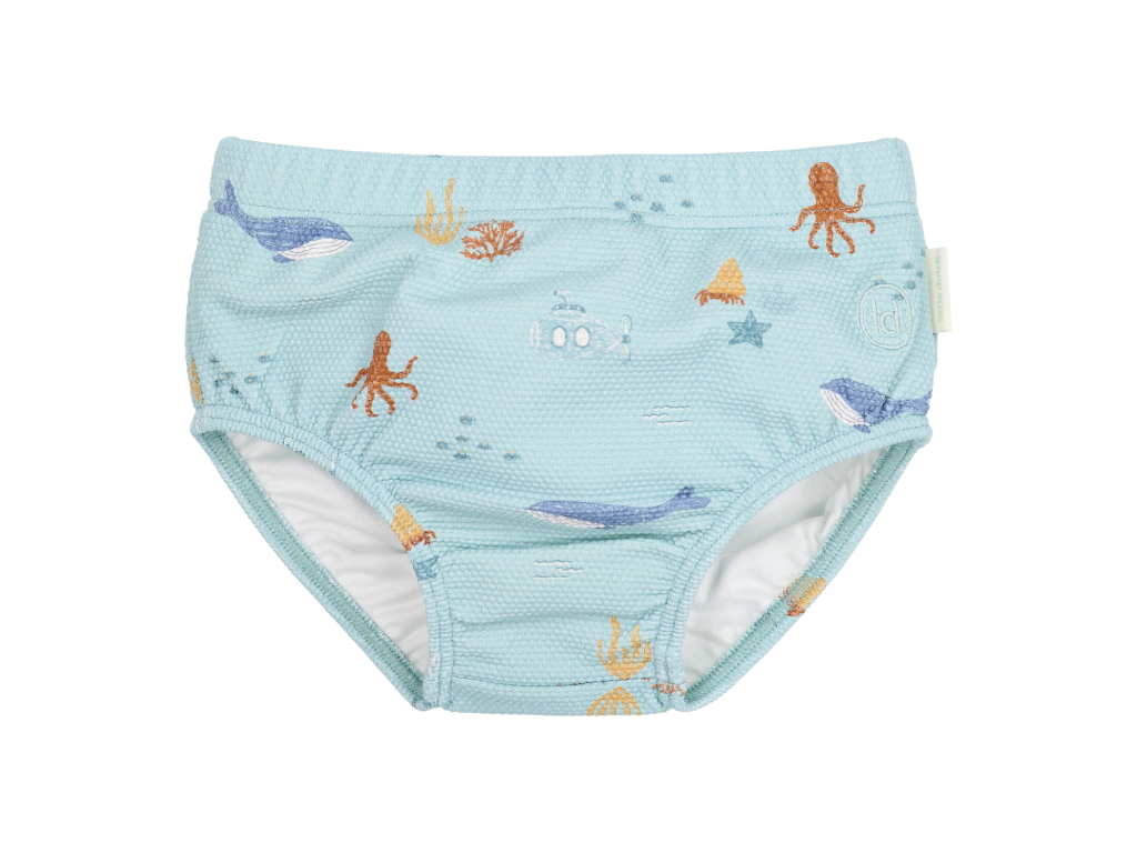 Plavky s krásným potiskem chrání vaše dítě před sluncem při koupání u moře i doma na zahradě. Nepromokavá vnější vrstva zabraňuje tomu, aby cokoliv z plavek uniklo. Materiál neabsorbuje vodu, takže plenkové plavky zůstávají při plavání lehké a pohodlné. Ať už vaše děti milují skákání ve vlnách, koupání v bazénu nebo si rády staví hrady z písku, v těchto plavkách si mohou bezstarostně užívat celý den. Složení: 94% recyklovaný nylon, 6% spandex Při pobytu na slunci používejte pro dítě ochranné opalovací krémy. Možno prát v pračce na 30°C. Po každém použití plavky propláchněte v čisté studené vodě.Doplňkové parametry