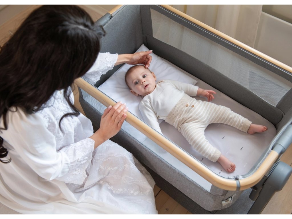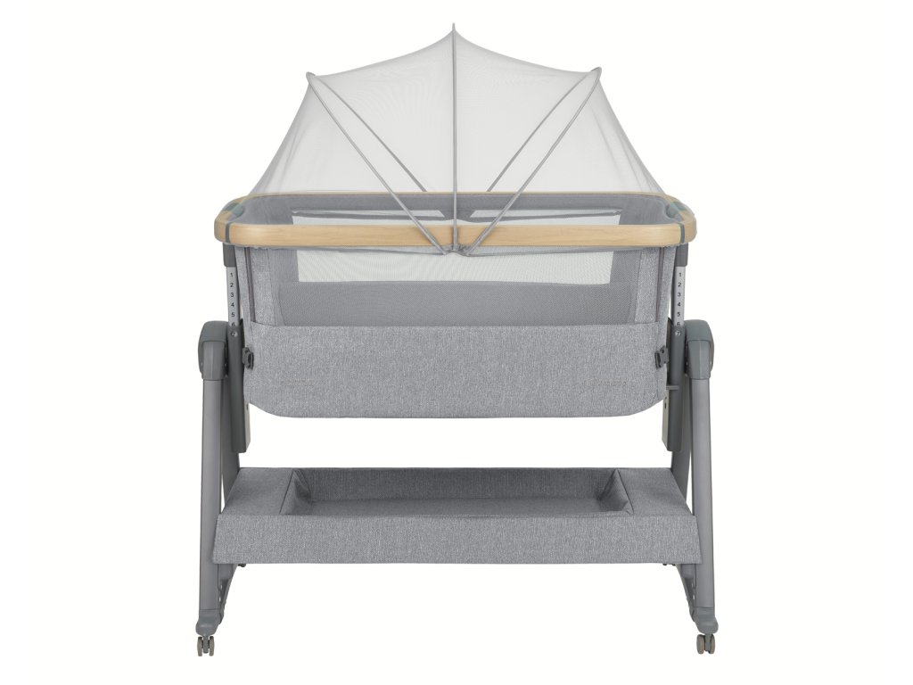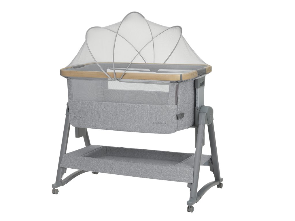Postýlka KikkaBoo Nanna je praktická a stylová přístavná postýlka k rodičovské posteli, která vám umožní mít miminko bezpečně u sebe a dopřát si tak klidnější spánek. Díky spouštěcí přední straně máte dítě vždy snadno na dosah pro kojení, uklidnění i kontrolu bez nutnosti vstávat. Součástí je bezpečnostní popruh pro pevné připevnění k rodičovské posteli, takže postýlka drží stabilně na místě. Moderní konstrukce v kombinaci lehkého hliníku s povrchovou úpravou v dekoru dřeva skvěle zapadne do každé ložnice a potěší i při cestování. houpací lišty s možností zajištění (můžete houpat nebo pevně zafixovat) 7 úrovní výškového nastavení, aby postýlka pasovala k různým typům postelí anti-reflux náklon, který pomáhá při potřebě mírně zvýšené polohy síťované panely pro lepší proudění čerstvého vzduchu pohodlná matrace moskytiéra pro ochranu před hmyzem 4 kolečka s brzdami pro snadné přesouvání protiskluzové nožky pro stabilitu prostorný úložný koš na pleny a další potřeby pro dítě přepravní taška vhodná na cesty i pro uskladnění Rozměry: 48 × 100 × 69–81 cm Hmotnost: 12,5 kg Výška matrace: 3 cm Nosnost: 9 kg Postýlka je vhodná od narození do cca 6 měsíců (max. 9 kg).Doplňkové parametry