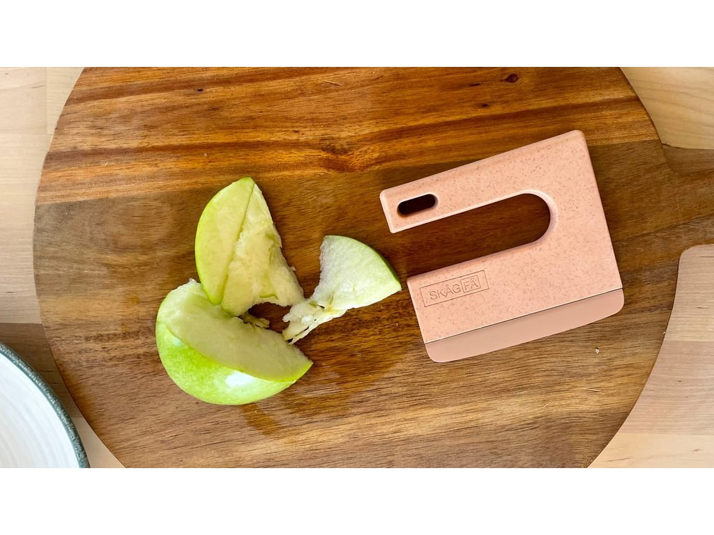 KLYV je navržen speciálně pro malé ruce, které se chtějí zapojit do vaření a mají velkou chuť pomáhat. Díky jedinečnému klínovitému tvaru a čepeli z nerezové oceli bez ostrých hran zvládnou děti samy nakrájet ovoce, zeleninu i jiné dobroty bezpečně, samostatně (avšak vždy pod dozorem dospělého!) a s radostí bez rizika poranění.
