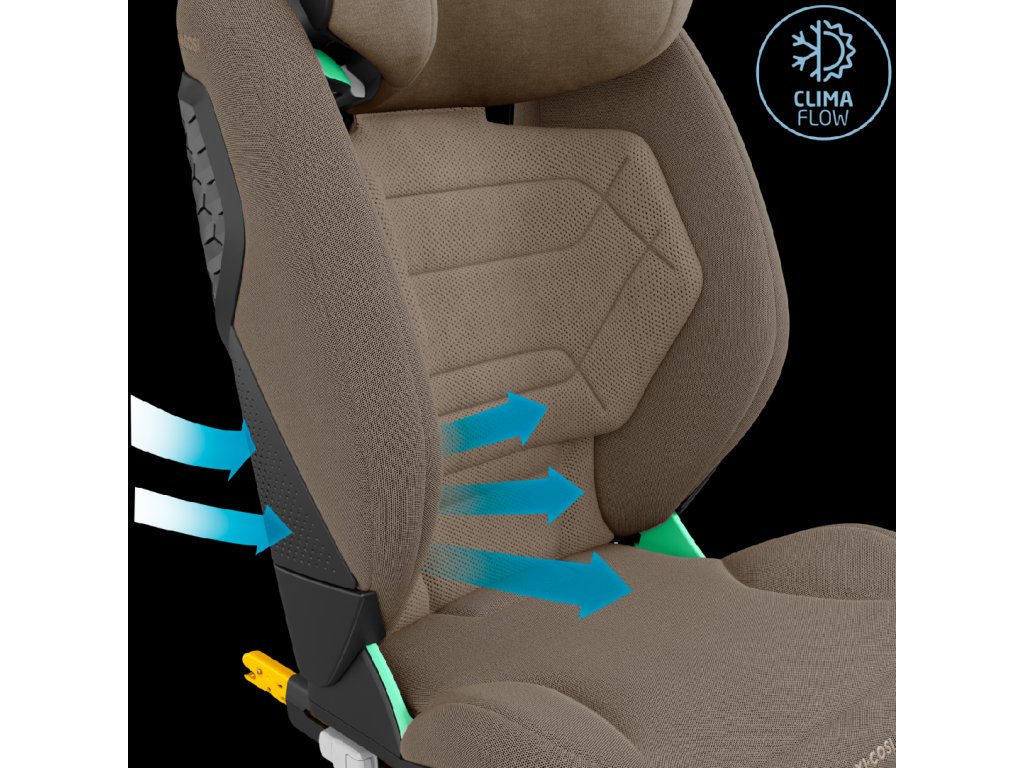 - Funkce ClimaFlow pro optimální tepelnou pohodu dítěte - speciální vzor a pěna opěradla spolu s prodyšnou tkaninou přispívají k dobré cirkulaci vzduchu po celou dobu jízdy