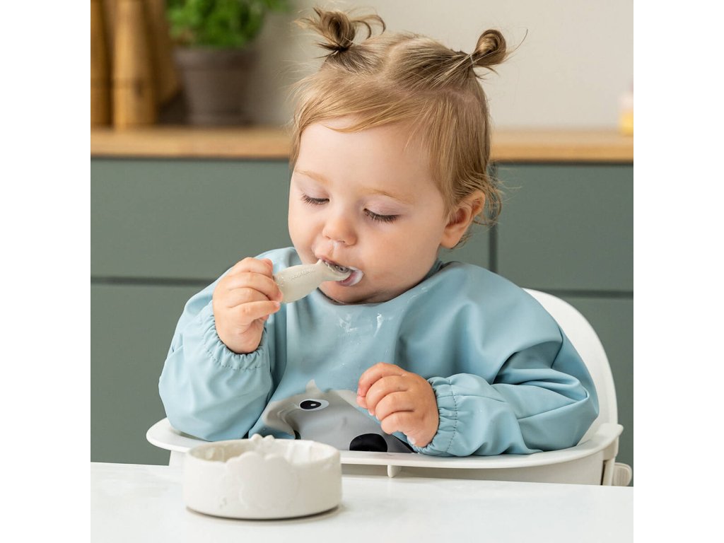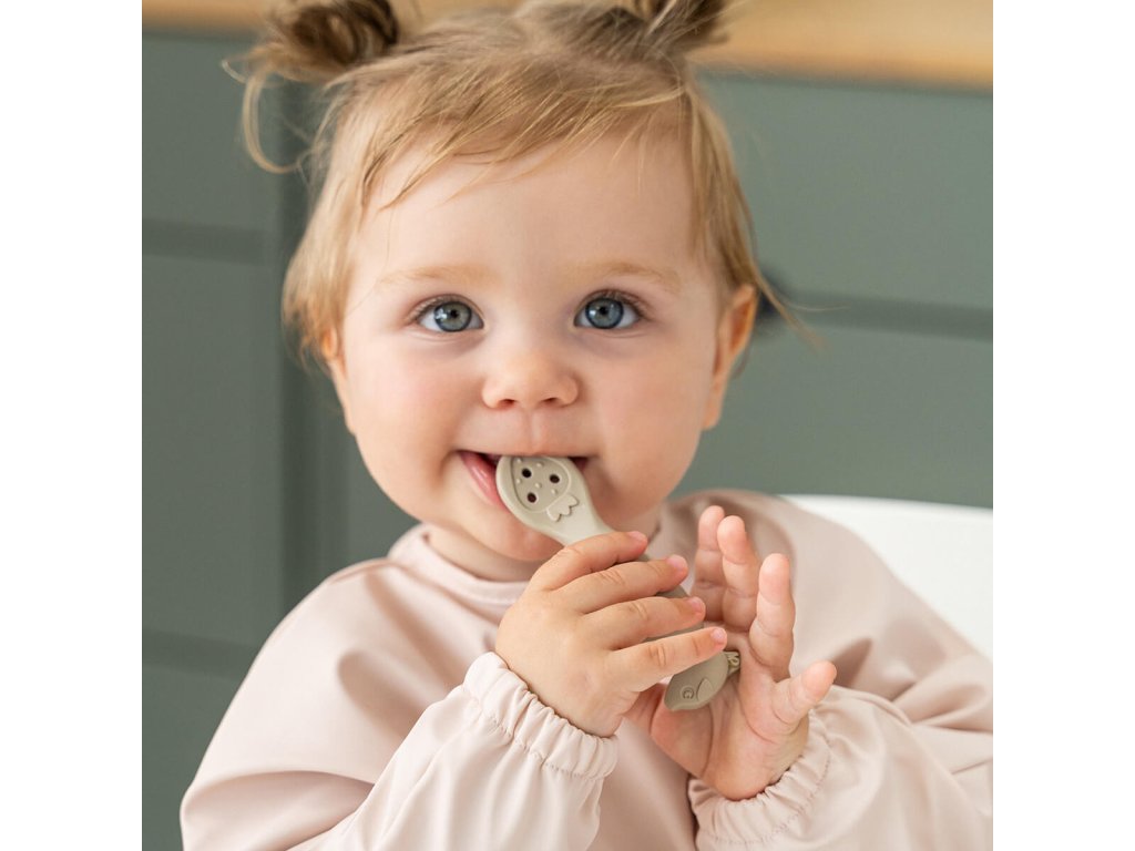 Silikonová Stick & Stay miska a lžička Sheepy - písková