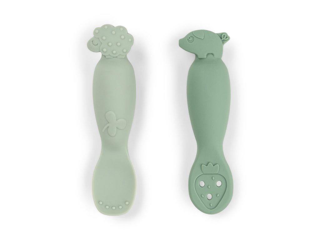 Silikonové lžičky Tiny farm 2ks - zelené