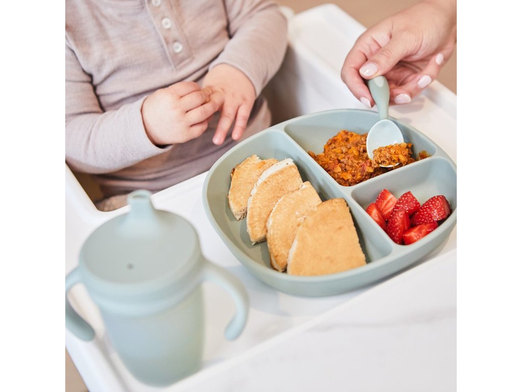 Silikonový dělený talířek s přísavkou a silikonovým víčkem značky b.box vyrobený z kvalitního potravinářského silikonu je nezbytností při přechodu dětí od kojení k samostatnému stravování. Stejně jako jiné produkty australské značky b.box je navržený pro pohodlí, funkčnost a styl!