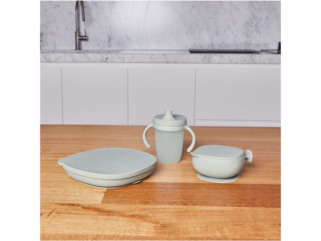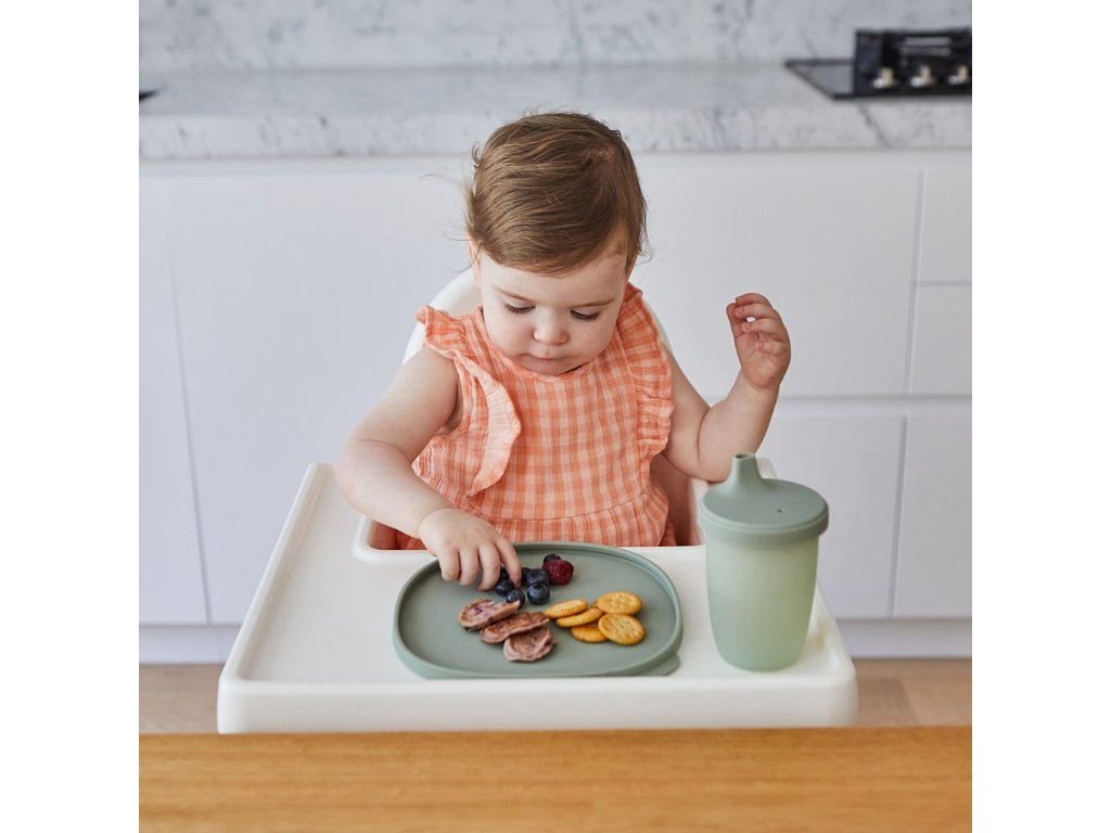 Vodotěsné víčko pomáhá udržet čerstvost jídla a můžete jej použít také jako další talířek na servírování. Zakřivené strany usnadní nabírání jídla a podporují děti při začátcích samostatného krmení. Silná protiskluzová přísavka udrží talířek na svém místě a po jídle ji lze snadno uvolnit zatažením za "záložku".