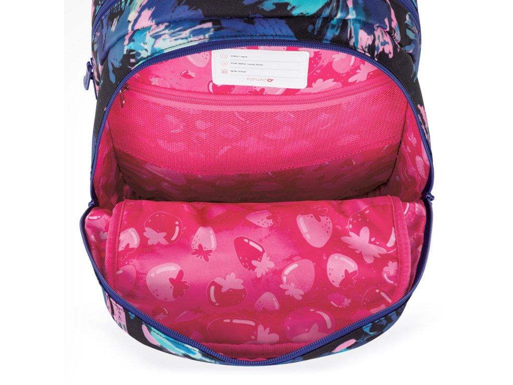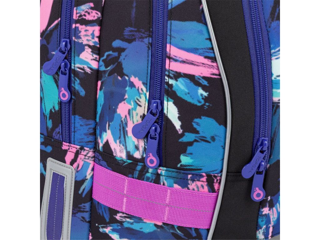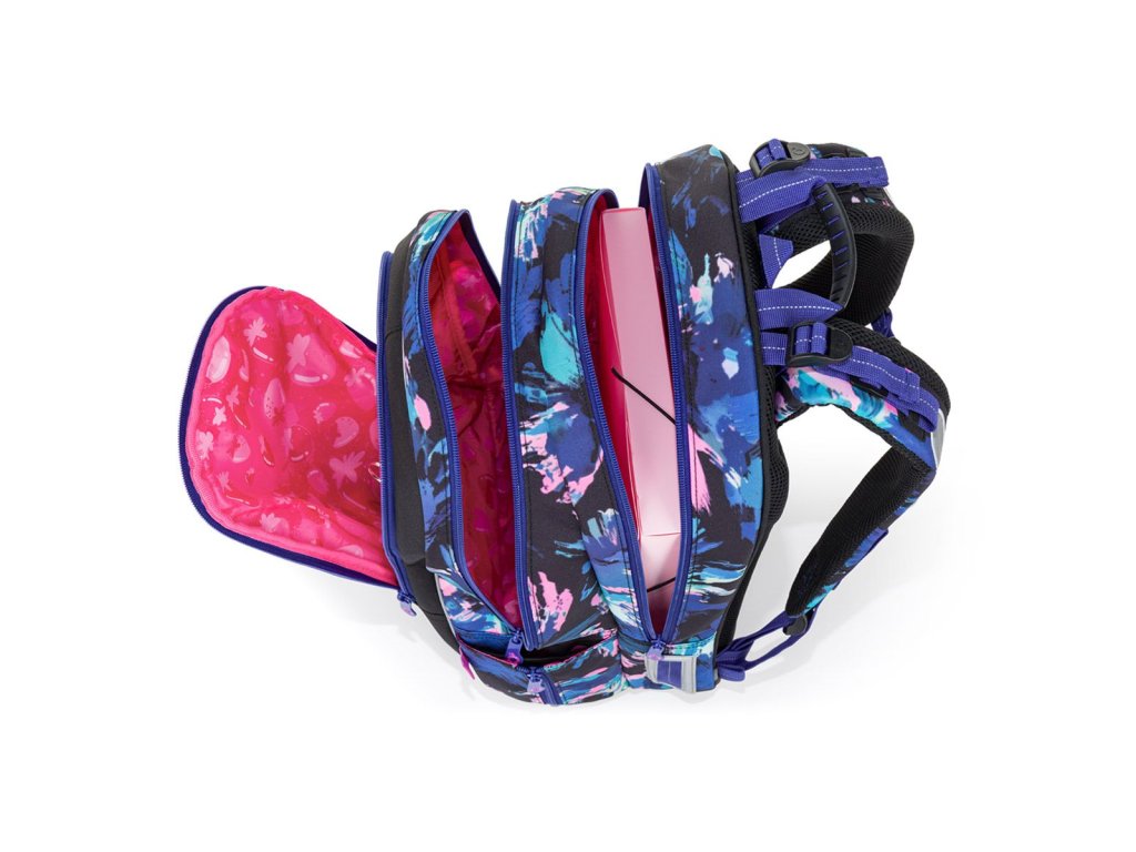 Školní batoh CODA 26010 je navržený pro starší školáky, kteří hledají spojení moderního designu a praktického řešení. Dynamický abstraktní vzor v modro-růžových tónech dodává batohu energický vzhled, který zaujme na první pohled.