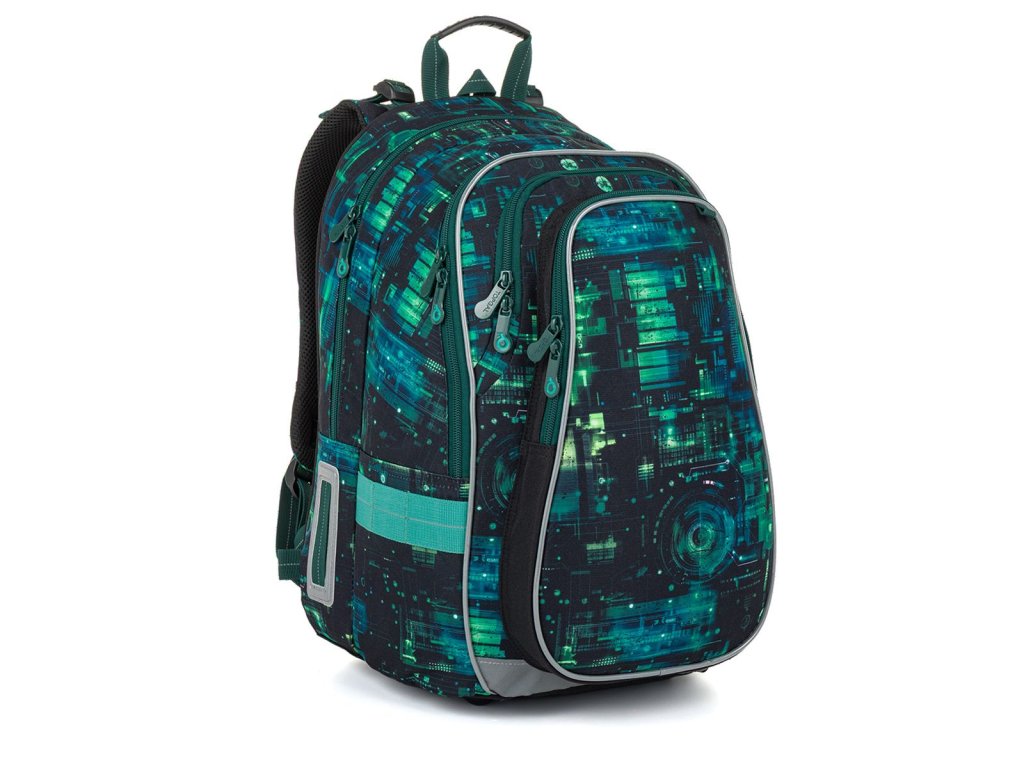 Školní batoh LYNN 26019 je dvoukomorový model navržený pro každodenní školní provoz. Moderní digitální motiv inspirovaný technologiemi osloví nejen kluky, kteří mají blízko k počítačům, hrám a futuristickému stylu.