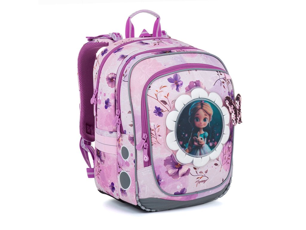 Lehoučký dvoukomorový model ENDY 26003 váží jen něco málo přes kilogram a perfektně padne drobným školačkám od první do třetí třídy základní školy. Jemný květinový motiv s kouzelnou vílou a třpytivým detailem dělá z batohu krásný doplněk, který si malé slečny zamilují na první pohled.