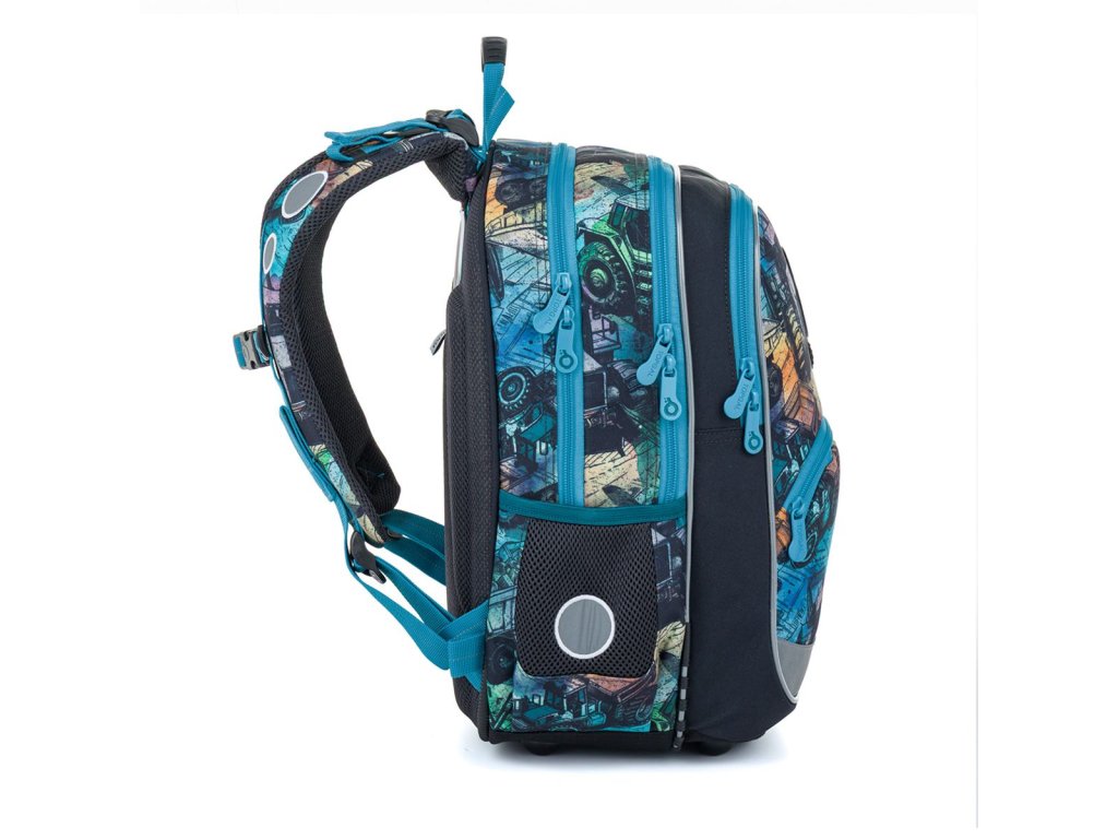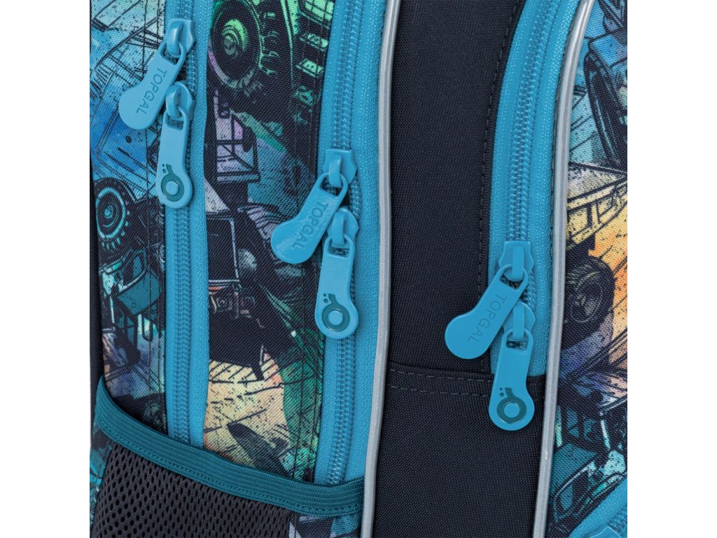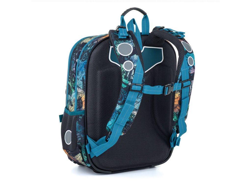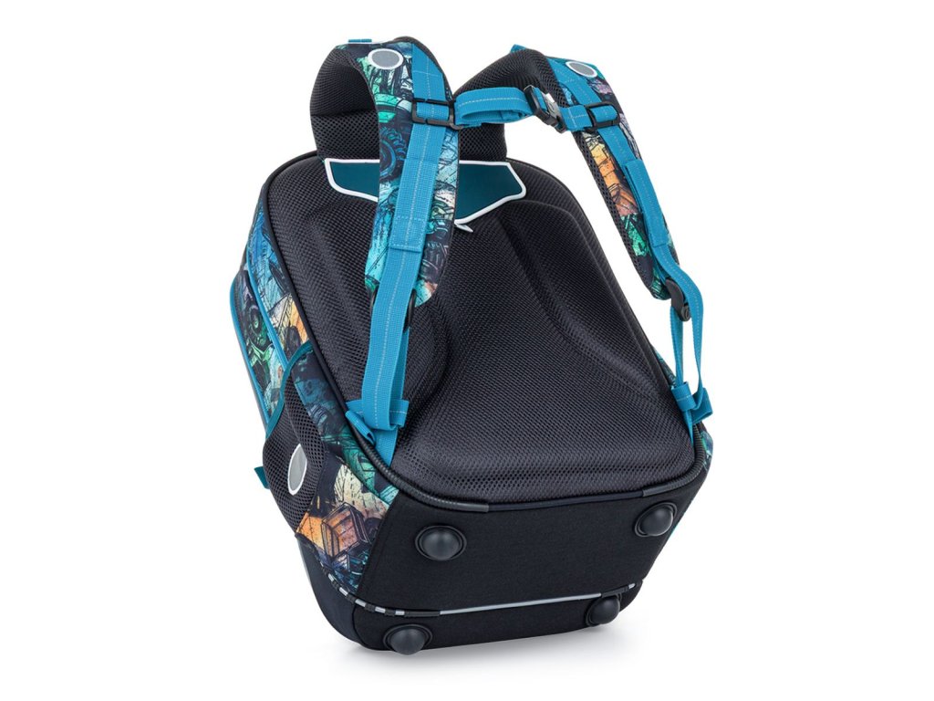 Spodní část batohu je vyrobená z odolného materiálu TOPDURA, který chrání batoh před oděrem a pomáhá mu držet tvar i při každodenním školním používání.