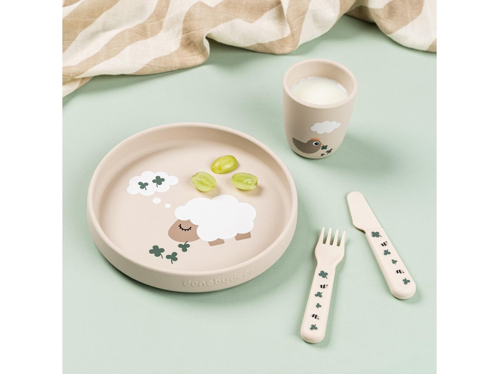 Jídelní talířek s hezkými obrázky. Přísavky na talíři udrží nádobí na místě během jídla. 100% potravinářský silikon bez obsahu BPA je bezpečný pro děti. Nádobí v jemných pudrových odstínech s vyraženými detaily roztomilých Deer friends. Perfektní dárek pro malé jedlíky.Doplňkové parametry