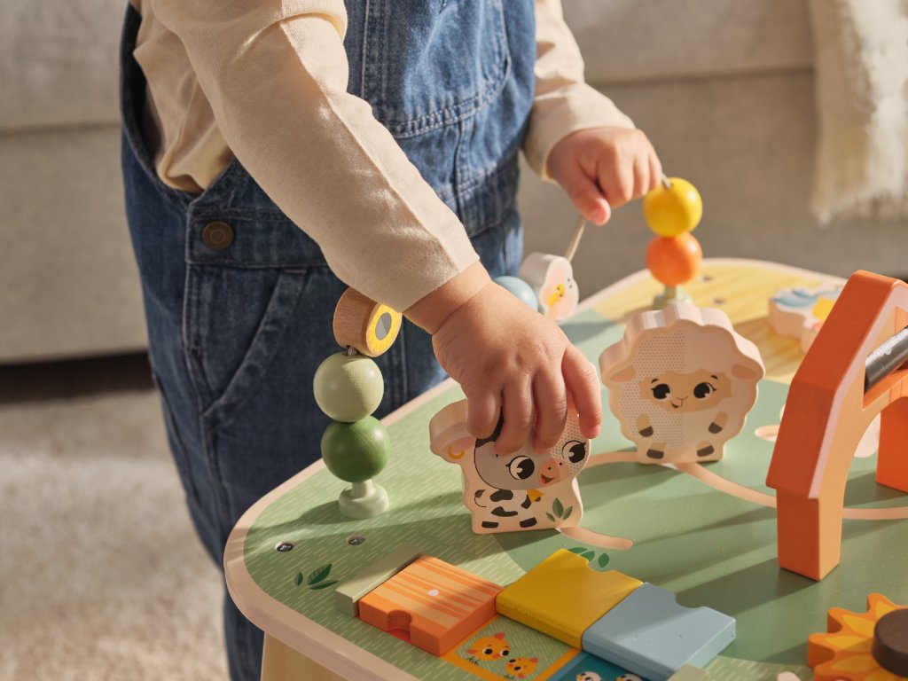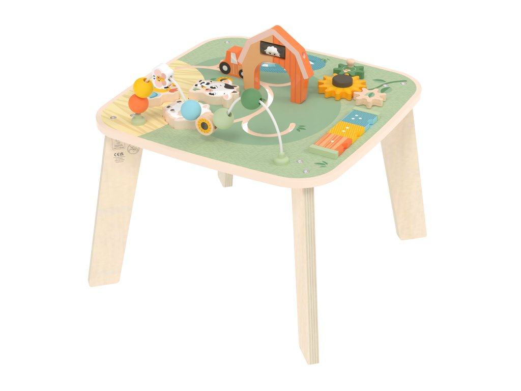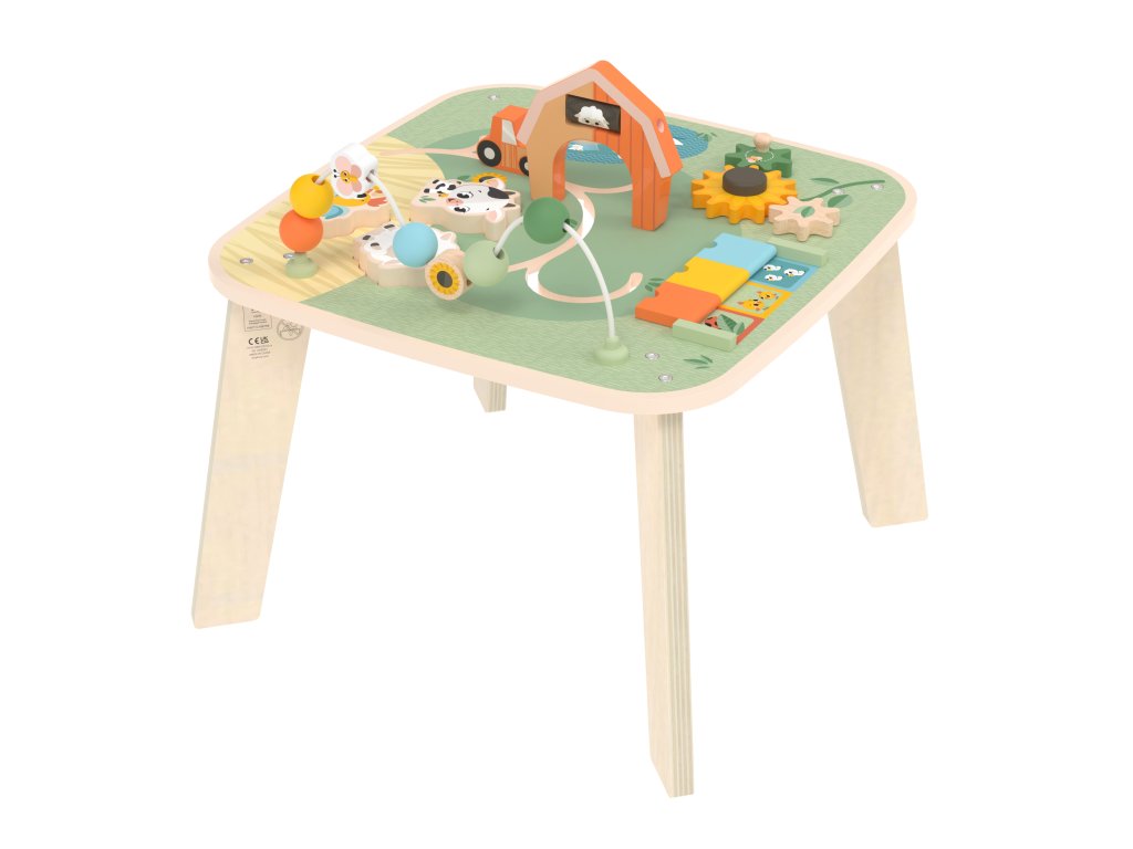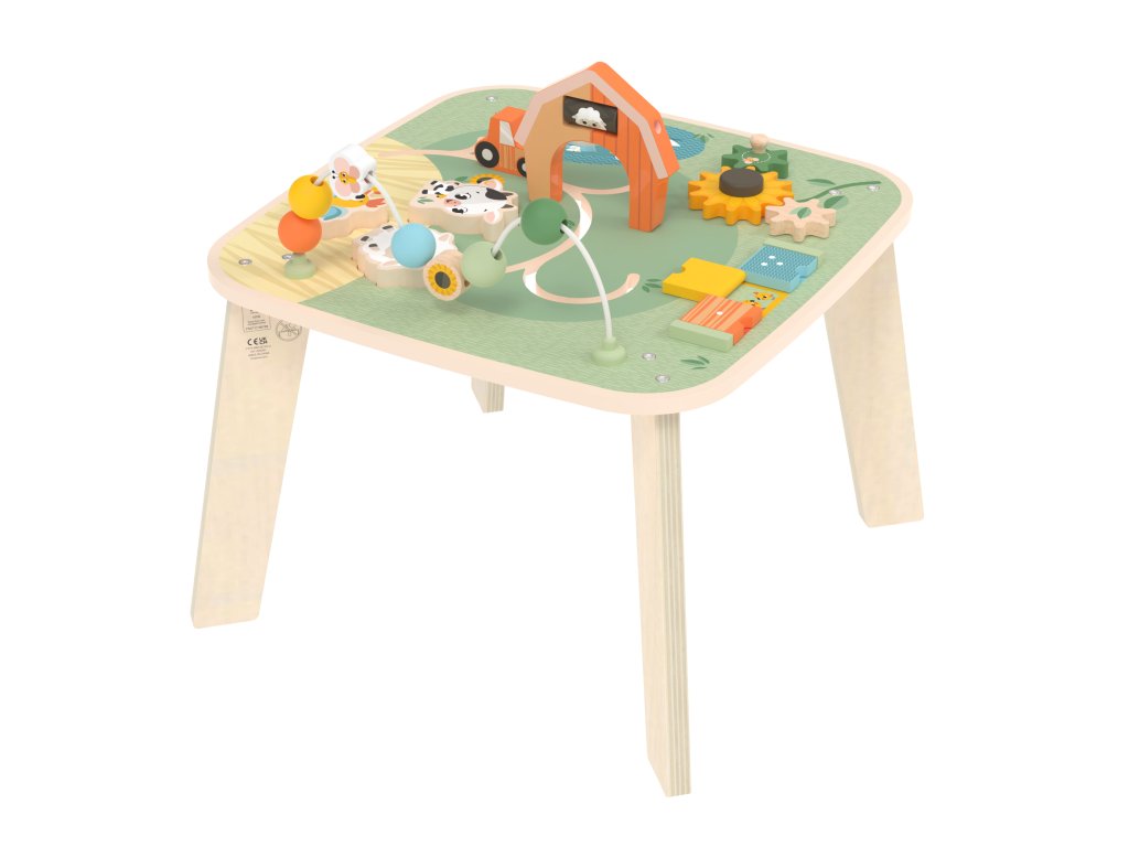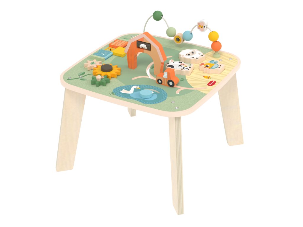 Dřevěný stolek s aktivitami Tiny Love je skvělá hračka pro malé objevitele, která nabízí spoustu možností, jak si hrát, zkoumat a učit se. Na jednom místě kombinuje různé pohyblivé prvky, vkládání a skrytá překvapení – dítě si tak přirozeně trénuje jemnou motoriku, koordinaci ruka–oko, soustředění i první logické uvažování. Stolek s krásnými motivy ze života na farmě podporuje samostatnou hru, ale zároveň je ideální i pro společné chvíle s rodiči nebo sourozenci. Stolek pomáhá rozvíjet jemnou motoriku, jednotlivé smysly, emoční inteligenci i kreativitu dítěte. Vyrobeno z kvalitního dřeva z odpovědně obhospodařovaných lesů. Rozměry (Š × V × H): 46,2 × 43 × 46,2 cm Vhodné pro děti od 12 měsíců.Doplňkové parametry