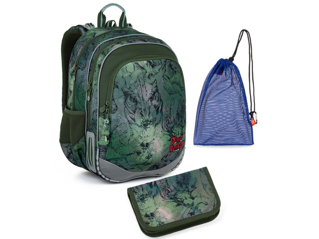 Dino motiv kluci prostě milují, proto se jej snažíme každý rok připravit. Letos padla volba na lehký střih batohu ELLY, který pojme všechno učení od 1. do 4. třídy, proto jsme motiv dino pojali realistickými kresbami pravěkých tvorů. Menší kluci určitě ocení přívěsek s plastovým krokodýlem, rodiče pak lehkou váhu batohu.