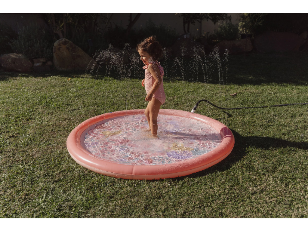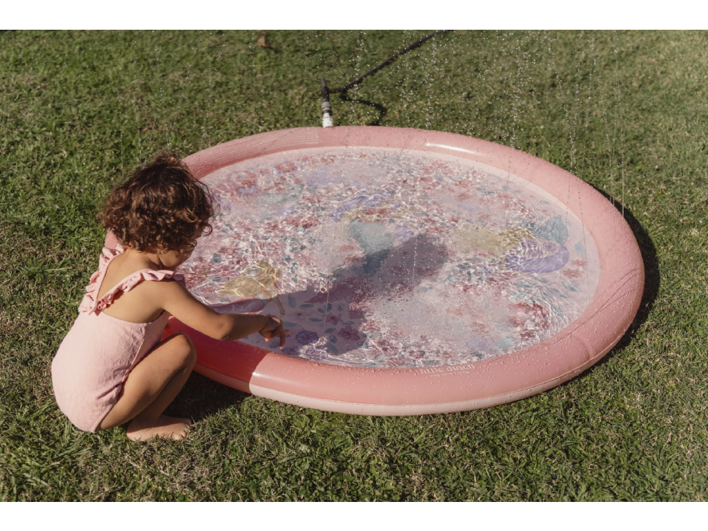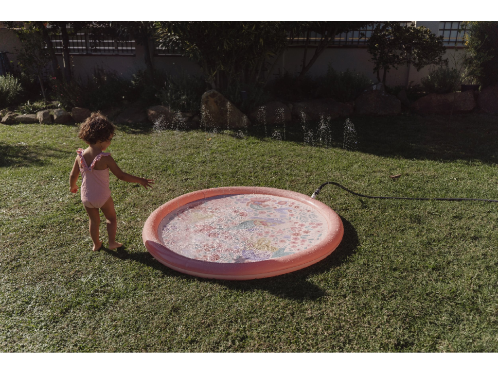 Originální hrací podložka s vodotryskem, který vytvoříte jednoduše připojením na zahradní hadici s pomocí přiložené spojky. Podložka s krásným potiskem motivů ze života mořské víly a květin je ideální doplněk na zahradu během horkých letních dní. Děti si budou užívat běhání přes stříkající vodotrysk i hraní si s vodou na podložce, která funguje jako mělký bazének. Podložka je součástí designové kolekce Little Dutch Dreamy Mermaid. Průměr: 150 cm Vhodné pro děti od 2 let.Doplňkové parametry