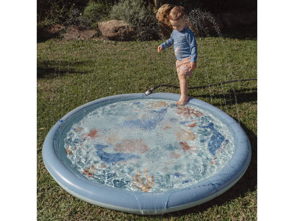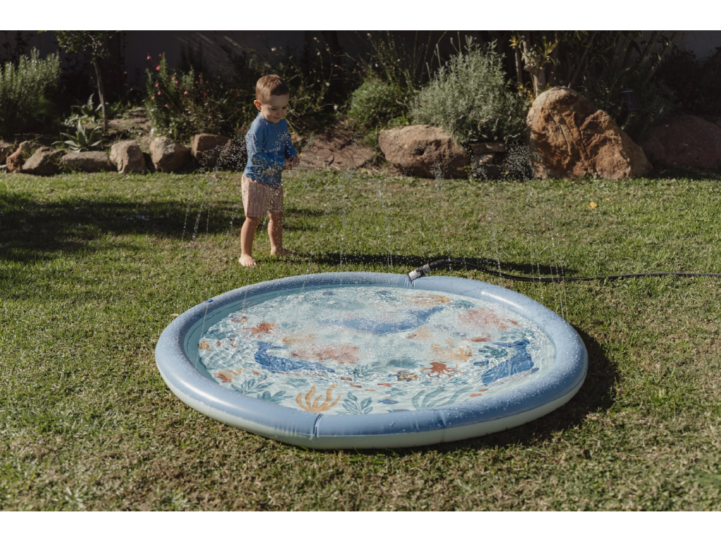 Originální hrací podložka s vodotryskem, který vytvoříte jednoduše připojením na zahradní hadici s pomocí přiložené spojky. Podložka s krásným potiskem motivů ze života pod mořskou hladinou je ideální doplněk na zahradu během horkých letních dní. Děti si budou užívat běhání přes stříkající vodotrysk i hraní si s vodou na podložce, která funguje jako mělký bazének. Podložka je součástí designové kolekce Little Dutch Ocean World. Průměr: 150 cm Vhodné pro děti od 2 let.Doplňkové parametry