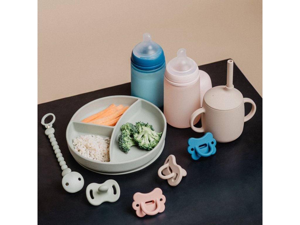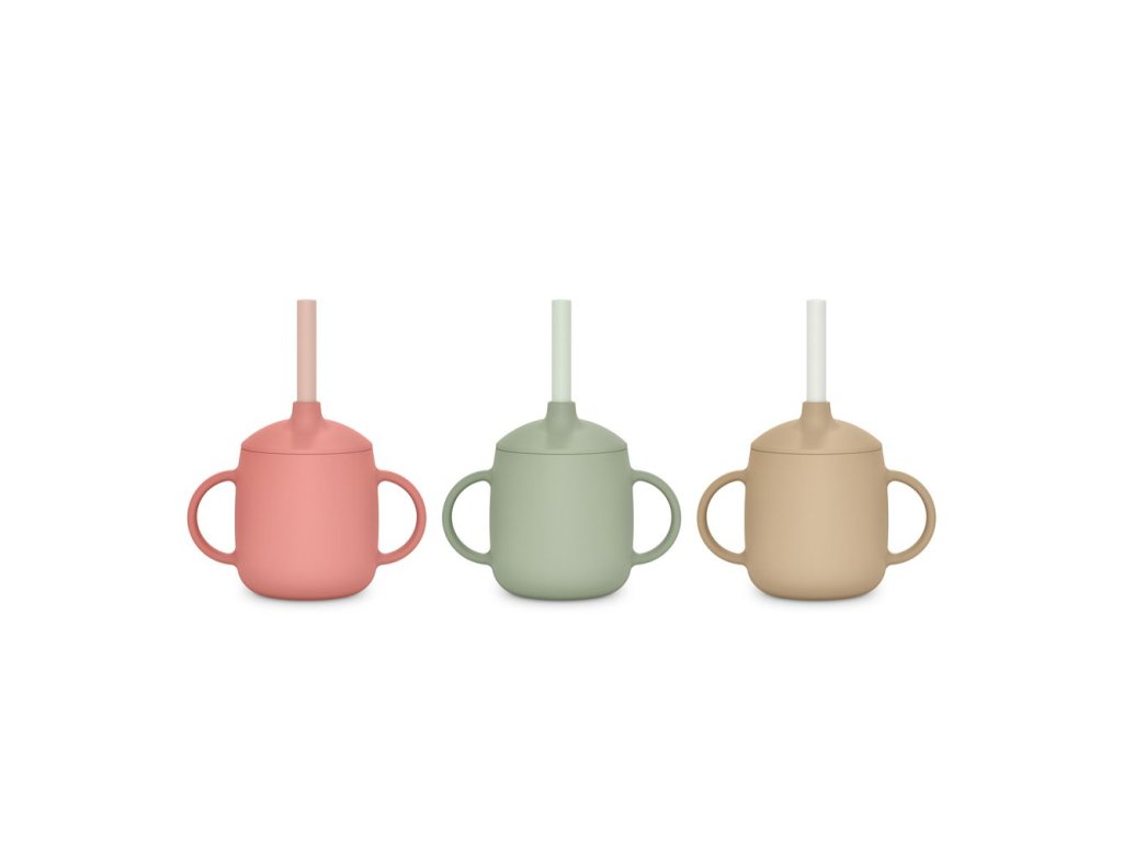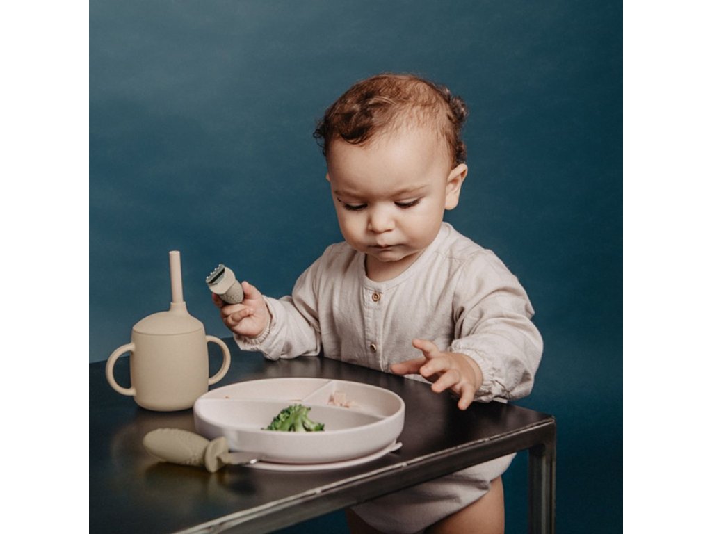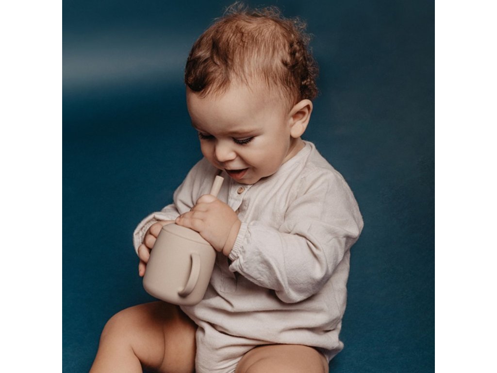- Silikonový hrneček s dvěma oušky, ideální pro dětské ručičky.