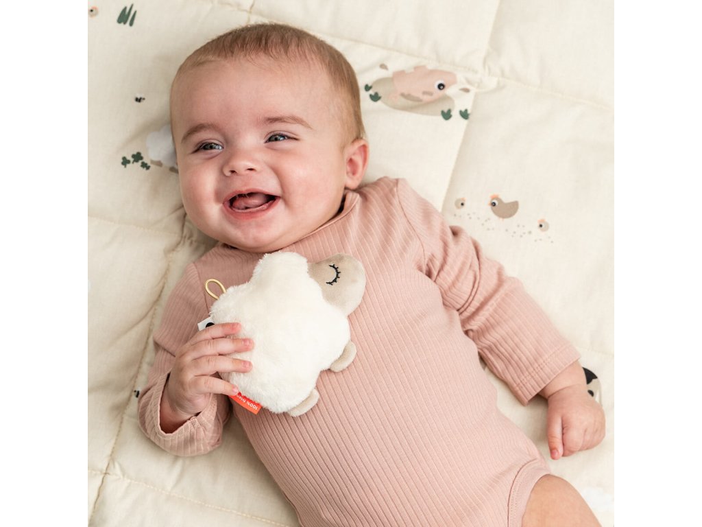 Sheepy si ráda hraje a baví ty nejmenší. Toto chrastítko je dokonalou první hračkou pro uchopení malými prsty - připravené objevit smyslové vlastnosti a zvuky. Pomocí elastické smyčky lze malé senzorické chrastítko snadno připevnit pomocí spojovacího článku na hrací podložku, kočárek a autosedačku.Doplňkové parametry