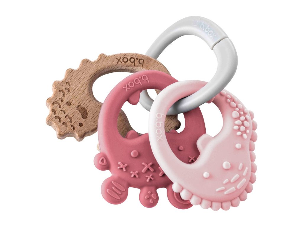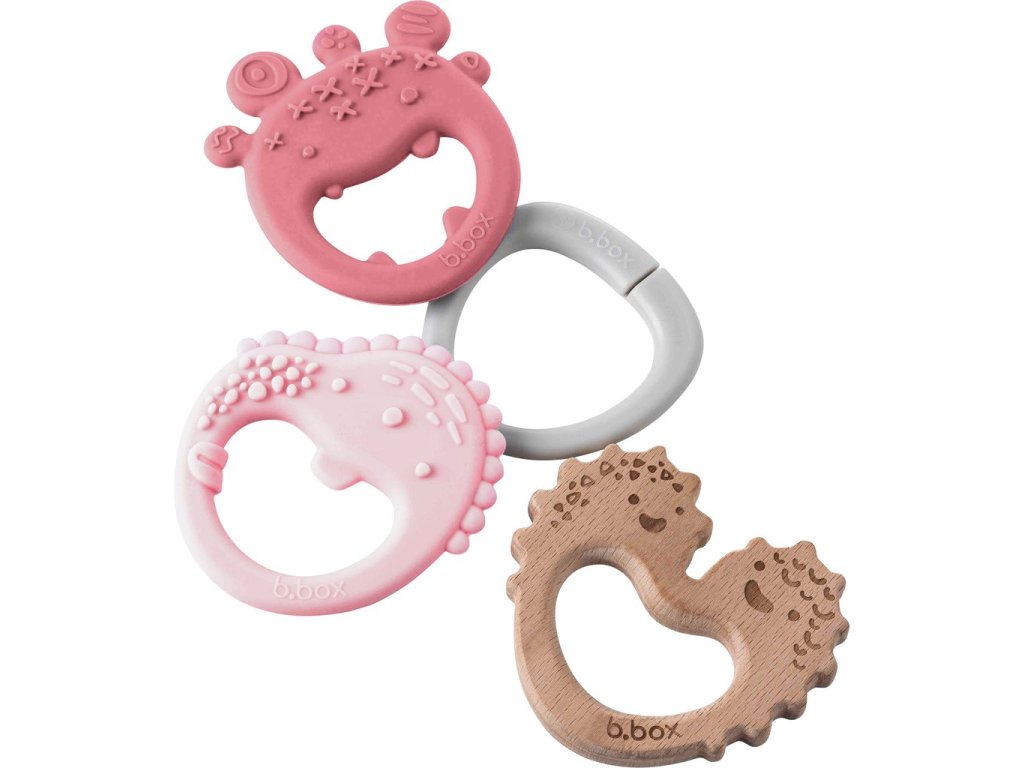 Představujeme vám b.box Trio kousátko, které uleví bolavým dásním a zároveň stimuluje senzorické schopnosti. Tři texturovaná kousátka na šikovném kroužku nabízí dítěti výběr mezi dvěmi silikonovými kousátky a dřevěným kousátkem. Kousátka jsou lehká a velmi dobře padnou do dětských ruček. Lze je používat samostatně nebo v setu na kroužku.