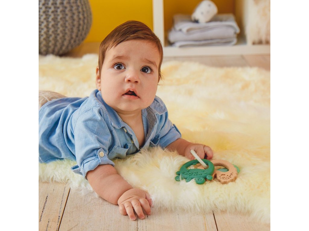 Kousátko bude dítě provázet od prořezávání prvních zoubků až k těm posledním. Měkký silikon je ideální pro první fáze prořezávání zoubků. Na kousátku vyrobeného ze středně tvrdého silikonu jsou výlisky a malé výstupky, aby s ním dítě dosáhlo dále do pusinky a ulevilo bolesti při prořezávání zoubků umístěných dále v pusince. Dřevěné kousátko je navrženo tak, aby bylo možné jej kousat až na zadních zubech.