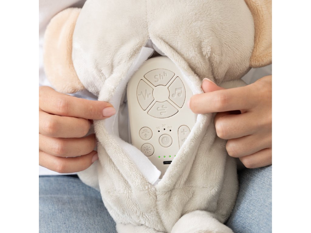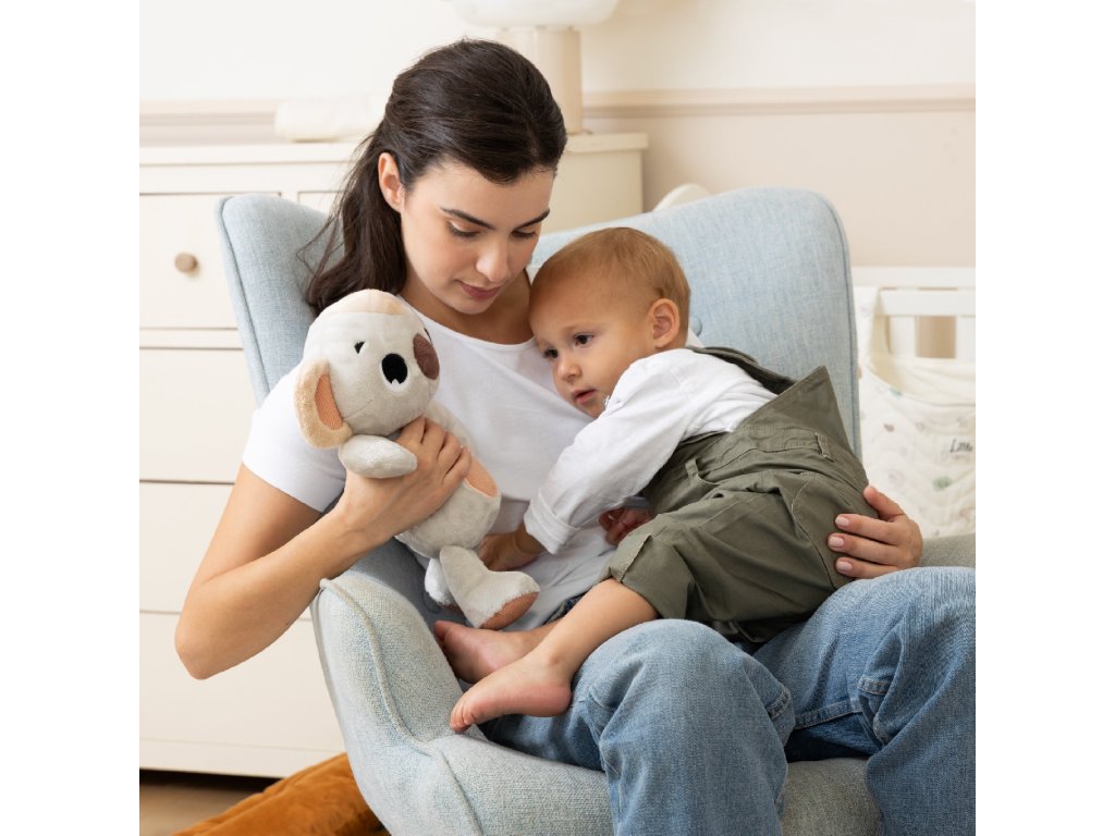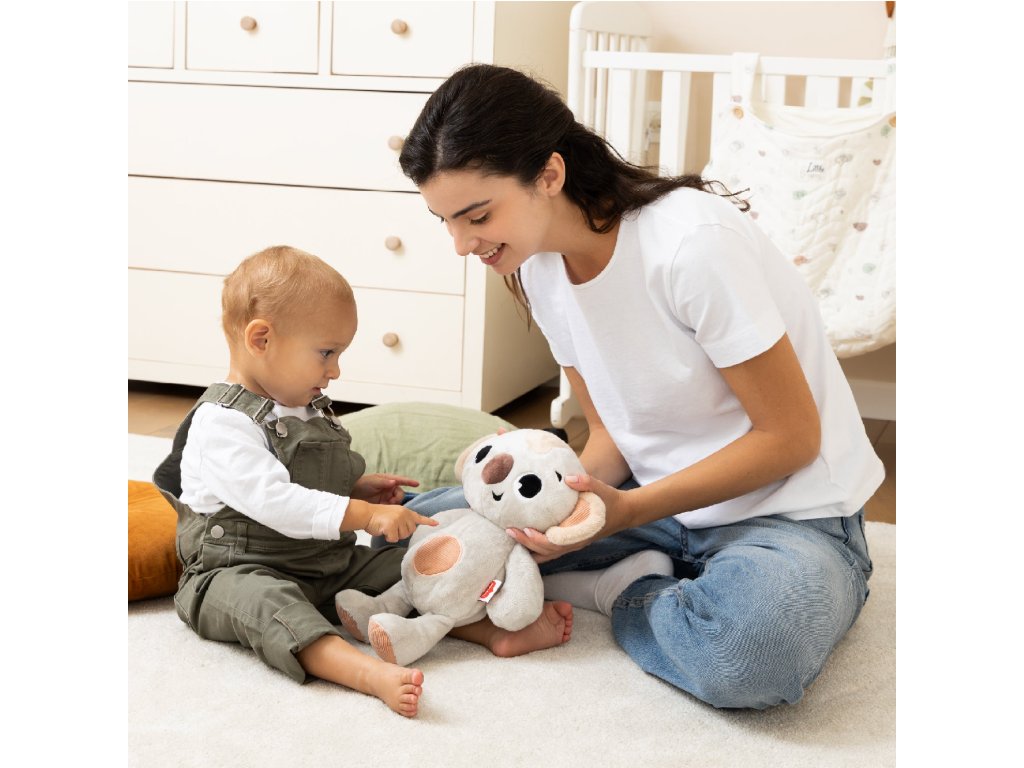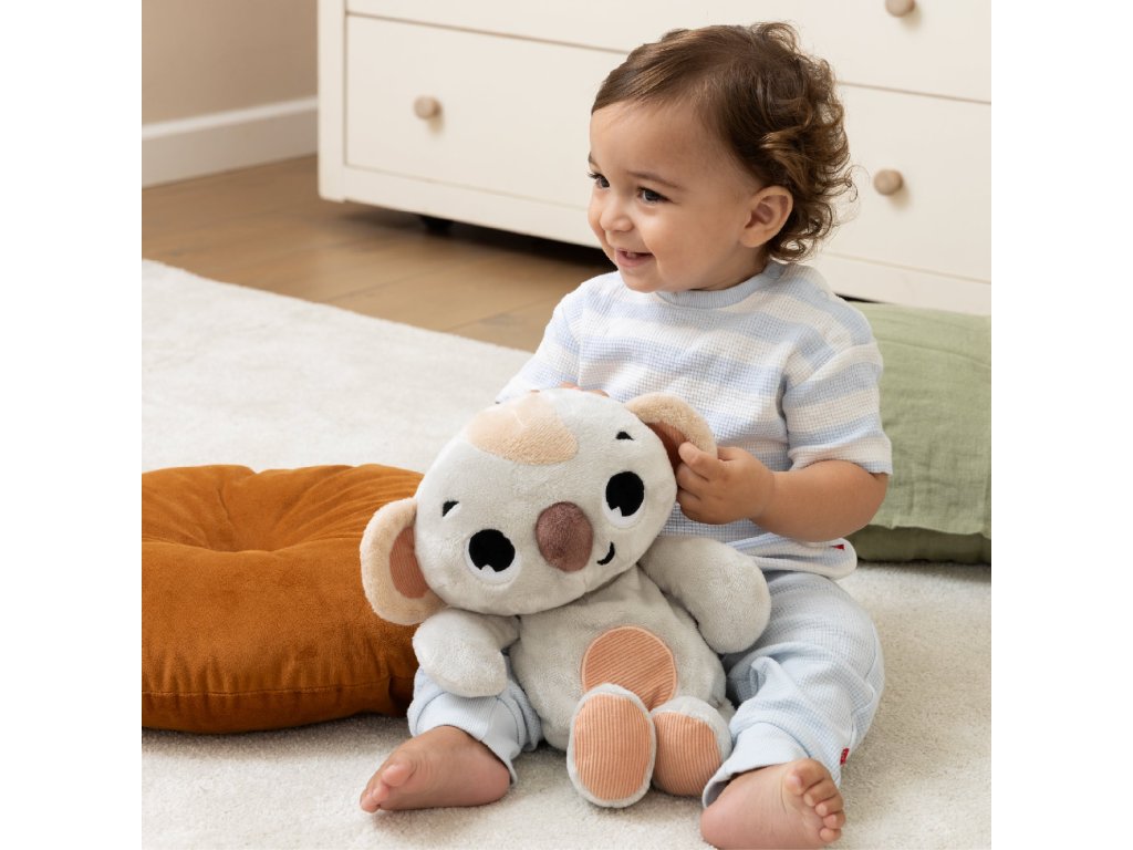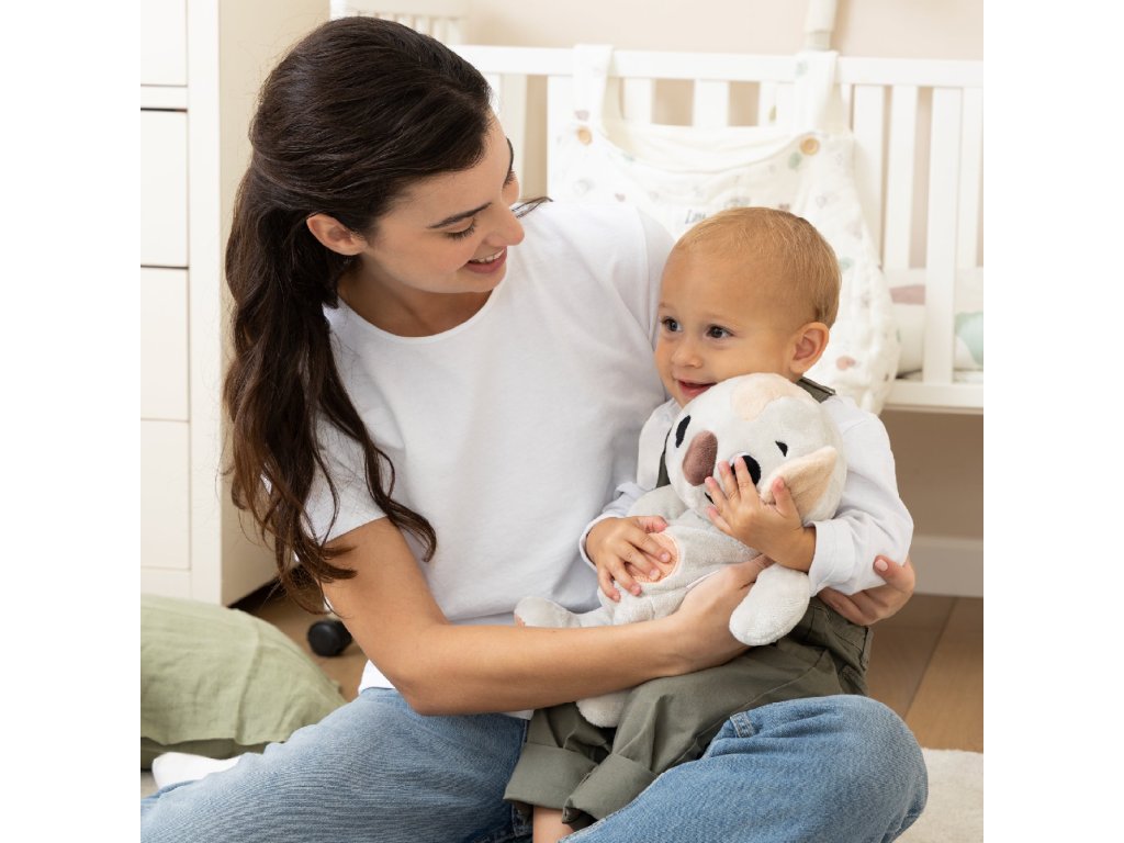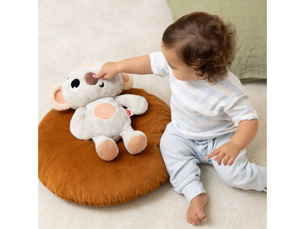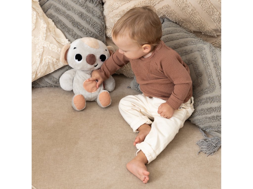 Roztomilý usínáček koala od Tiny Love pomáhá miminku klidně usnout a cítit se v bezpečí doma i na cestách. Kombinuje jemné světlo, uklidňující zvuky a realistické pohyby dechu, které navozují pocit přítomnosti a klidu. Multifunkční usínáček - spojuje plyšovou hračku, noční světýlko a hudební přehrávač v jednom Uklidňující světlo - nabízí 3 úrovně intenzity světla, které vytváří příjemnou atmosféru před spaním Zvukové funkce - obsahuje 8 ukolébavek a 5 bílých šumů pro snadné a klidné usínání Simulace dechu - pohyb bříška napodobuje rytmus dýchání a pomáhá miminku cítit se v bezpečí Časovač - možnost nastavení na 15, 30 minut nebo nepřetržitý provoz Snadné nabíjení - dobíjecí baterie přes USB-C kabel, s indikátorem nabití Praktická údržba - vyjímatelná baterie umožňuje praní plyšového obalu v pračce Bezpečné od narození - jemné materiály vhodné i pro novorozence Rozměry: 33 x 22 x 12,5 cm Vhodné pro děti od narození.Doplňkové parametry