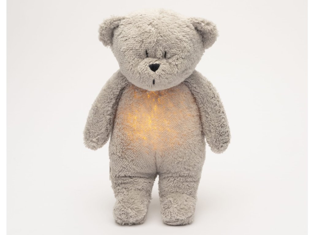 Moonie usínáček v podobě roztomilého medvídka s nočním světlem a relaxačními zvuky pomáhá miminku uklidnit se a snáze usnout. Uklidňující zvuky připomínají dítěti prostředí v děloze maminky před jeho narozením. Usínáček nabízí pět přírodních relaxačních zvuků (tlukot srdce, vítr, lesní potok, mořské vlny, déšť), kalimba ukolébavku, dvě klasické ukolébavky a umožňuje nahrání vlastního hlasu. Bříško medvídka svítí a slouží jako noční světlo s výběrem sedmi barev svícení. Jemné světlo pomáhá dítěti cítit se v postýlce bezpečně. Světlo je možné zapnout i bez zvuků. Při zapnuté funkci Shake světlo zapnete zatřesením hračkou. Medvídek se při svícení nijak nezahřívá a je pro dítě zcela bezpečný. Funkce časovače umožňuje nastavit dobu přehrávání na 30, 60 nebo 90 minut, než modul přejde do režimu inteligentního senzoru pláče. Inteligentní senzor aktivuje zvuk a světlo, když dítě začne plakat. Hračka pak přehrává relaxační zvuky a jemně svítí po dobu 20 minut. Hudební modul umožňuje nastavení hlasitosti a doby přehrávání dle vašich preferencí. Hračka se dobíjí s pomocí USB kabelu, k plnému nabití potřebuje 3 hodiny. Plně nabitá baterie vydrží až 8 hodin nepřetržitého provozu se zapnutým světlem a zvukem. USB kabel je součástí balení. Po vyjmutí zvukového a svítícího modulu můžete hračku prát v ruce. Medvídek je součástí produktové řady Moonie Organic, vyráběné z cetifikované organické bavlny, barvené netoxickými barvami. Bavlna pochází z produkce bez použití pesticidů a toxických hnojiv. Při pěstování organické bavlny se používá o 50% méně vody ve srovnání s průmyslovým pěstováním. Výplň hračky tvoří recyklovaný materiál. Hračka byla testována švýcarskou laboratoří SGS a je v souladu se směrnicí 2009/48/ES o bezpečnosti hraček. Rozměry: 28 x 16 x 10,5 cm Vhodné pro děti od narození.Doplňkové parametry