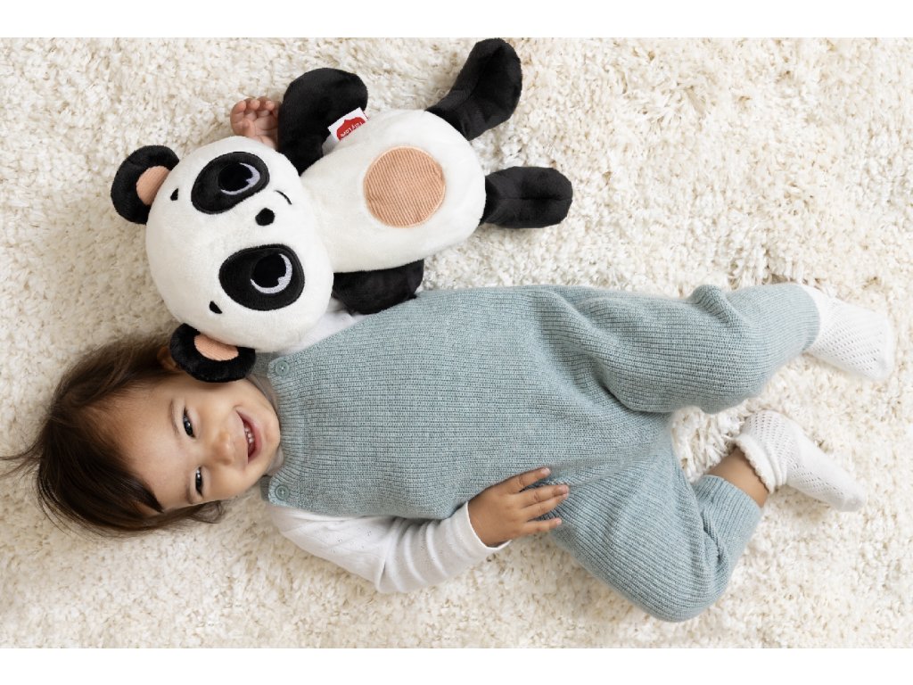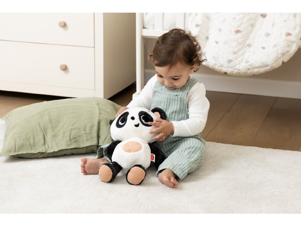 Roztomilý usínáček Panda od Tiny Love pomáhá miminku klidně usnout a cítit se v bezpečí doma i na cestách. Kombinuje jemné světlo, uklidňující zvuky a realistické pohyby dechu, které navozují pocit přítomnosti a klidu. Multifunkční usínáček - spojuje plyšovou hračku, noční světýlko a hudební přehrávač v jednom Uklidňující světlo - nabízí 3 úrovně intenzity světla, které vytváří příjemnou atmosféru před spaním Zvukové funkce - obsahuje 8 ukolébavek a 5 bílých šumů pro snadné a klidné usínání Simulace dechu - pohyb bříška napodobuje rytmus dýchání a pomáhá miminku cítit se v bezpečí Časovač - možnost nastavení na 15, 30 minut nebo nepřetržitý provoz Snadné nabíjení - dobíjecí baterie přes USB-C kabel, s indikátorem nabití Praktická údržba - vyjímatelná baterie umožňuje praní plyšového obalu v pračce Bezpečné od narození - jemné materiály vhodné i pro novorozence Vhodné pro děti od narození.Doplňkové parametry
