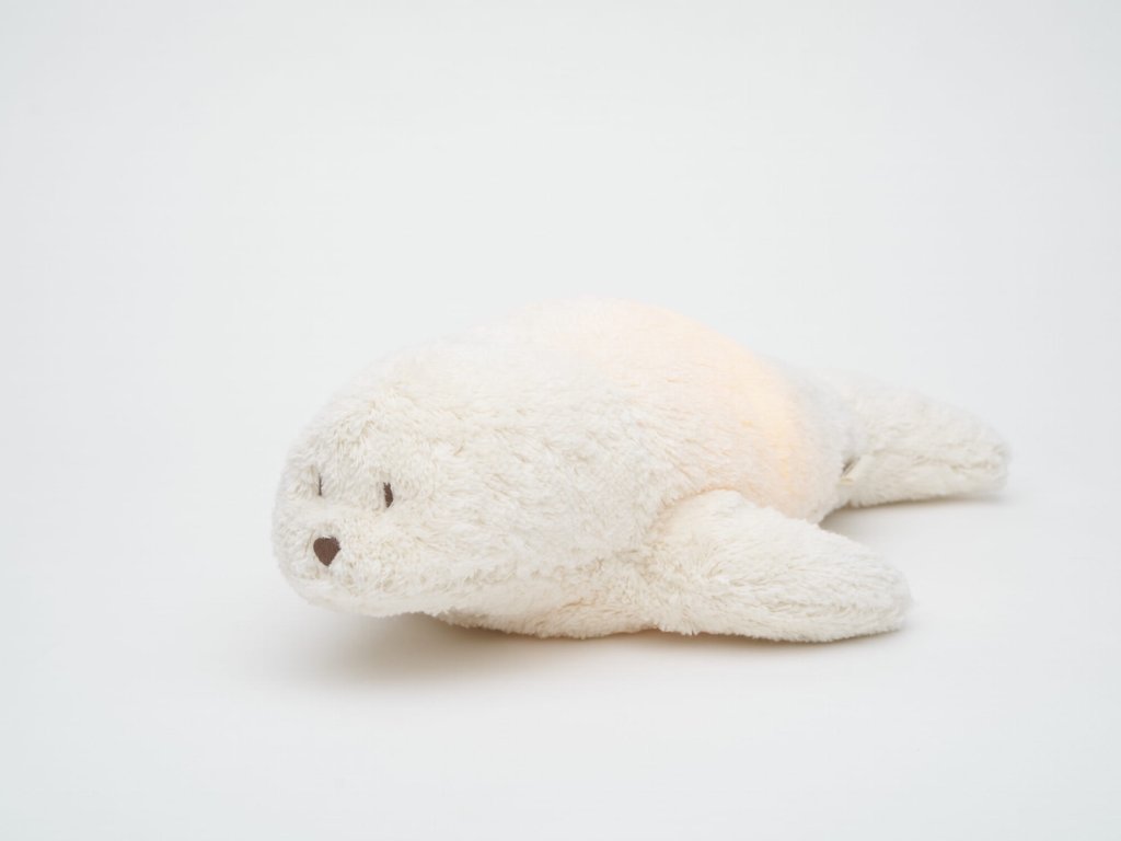 Moonie usínáček v podobě roztomilého tuleně s nočním světlem a relaxačními zvuky pomáhá miminku uklidnit se a snáze usnout. Uklidňující zvuky připomínají dítěti prostředí v děloze maminky před jeho narozením. Usínáček nabízí pět přírodních relaxačních zvuků (tlukot srdce, vítr, lesní potok, mořské vlny, déšť), kalimba ukolébavku, dvě klasické ukolébavky a umožňuje nahrání vlastního hlasu. Bříško tuleně svítí a slouží jako noční světlo s výběrem sedmi barev svícení. Jemné světlo pomáhá dítěti cítit se v postýlce bezpečně. Světlo je možné zapnout i bez zvuků. Při zapnuté funkci Shake světlo zapnete zatřesením hračkou. Tuleň se při svícení nijak nezahřívá a je pro dítě zcela bezpečný. Funkce časovače umožňuje nastavit dobu přehrávání na 30, 60 nebo 90 minut, než modul přejde do režimu inteligentního senzoru pláče. Inteligentní senzor aktivuje zvuk a světlo, když dítě začne plakat. Hračka pak přehrává relaxační zvuky a jemně svítí po dobu 20 minut. Hudební modul umožňuje nastavení hlasitosti a doby přehrávání dle vašich preferencí. Hračka se dobíjí s pomocí USB kabelu, k plnému nabití potřebuje 3 hodiny. Plně nabitá baterie vydrží až 8 hodin nepřetržitého provozu se zapnutým světlem a zvukem. USB kabel je součástí balení. Po vyjmutí zvukového a svítícího modulu můžete hračku prát v ruce. Tuleň je součástí produktové řady Moonie Organic, vyráběné z cetifikované organické bavlny, barvené netoxickými barvami. Bavlna pochází z produkce bez použití pesticidů a toxických hnojiv. Při pěstování organické bavlny se používá o 50% méně vody ve srovnání s průmyslovým pěstováním. Výplň hračky tvoří recyklovaný materiál. Hračka byla testována švýcarskou laboratoří SGS a je v souladu se směrnicí 2009/48/ES o bezpečnosti hraček. Vhodné pro děti od narození.Doplňkové parametry