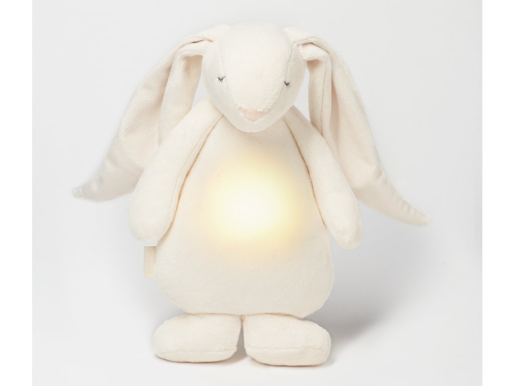 Moonie usínáček v podobě roztomilého zajíčka s nočním světlem a relaxačními zvuky pomáhá miminku uklidnit se a snáze usnout. Uklidňující zvuky připomínají dítěti prostředí v děloze maminky před jeho narozením. Usínáček nabízí pět přírodních relaxačních zvuků (tlukot srdce, vítr, lesní potok, mořské vlny, déšť), kalimba ukolébavku, dvě klasické ukolébavky a umožňuje nahrání vlastního hlasu. Bříško zajíčka svítí a slouží jako noční světlo s výběrem sedmi barev svícení. Jemné světlo pomáhá dítěti cítit se v postýlce bezpečně. Světlo je možné zapnout i bez zvuků. Při zapnuté funkci Shake světlo zapnete zatřesením hračkou. Zajíček se při svícení nijak nezahřívá a je pro dítě zcela bezpečný. Funkce časovače umožňuje nastavit dobu přehrávání na 30, 60 nebo 90 minut, než modul přejde do režimu inteligentního senzoru pláče. Inteligentní senzor aktivuje zvuk a světlo, když dítě začne plakat. Hračka pak přehrává relaxační zvuky a jemně svítí po dobu 20 minut. Hudební modul umožňuje nastavení hlasitosti a doby přehrávání dle vašich preferencí. Hračka se dobíjí s pomocí USB kabelu, k plnému nabití potřebuje 3 hodiny. Plně nabitá baterie vydrží až 8 hodin nepřetržitého provozu se zapnutým světlem a zvukem. USB kabel je součástí balení. Po vyjmutí zvukového a svítícího modulu můžete hračku prát v pračce. Moonie zajíček je vyroben z nejkvalitnějších, certifikovaných a bezpečných materiálů pro děti. Hračka byla testována švýcarskou laboratoří SGS a je v souladu se směrnicí 2009/48/ES o bezpečnosti hraček. Všechny materiály, ze kterých je zajíček MOONIE vyroben, jsou certifikovány OEKO-TEX a jsou super jemné a příjemné na dotek. Rozměry: 28 x 16 x 10,5 cm Vhodné pro děti od narození.Doplňkové parametry