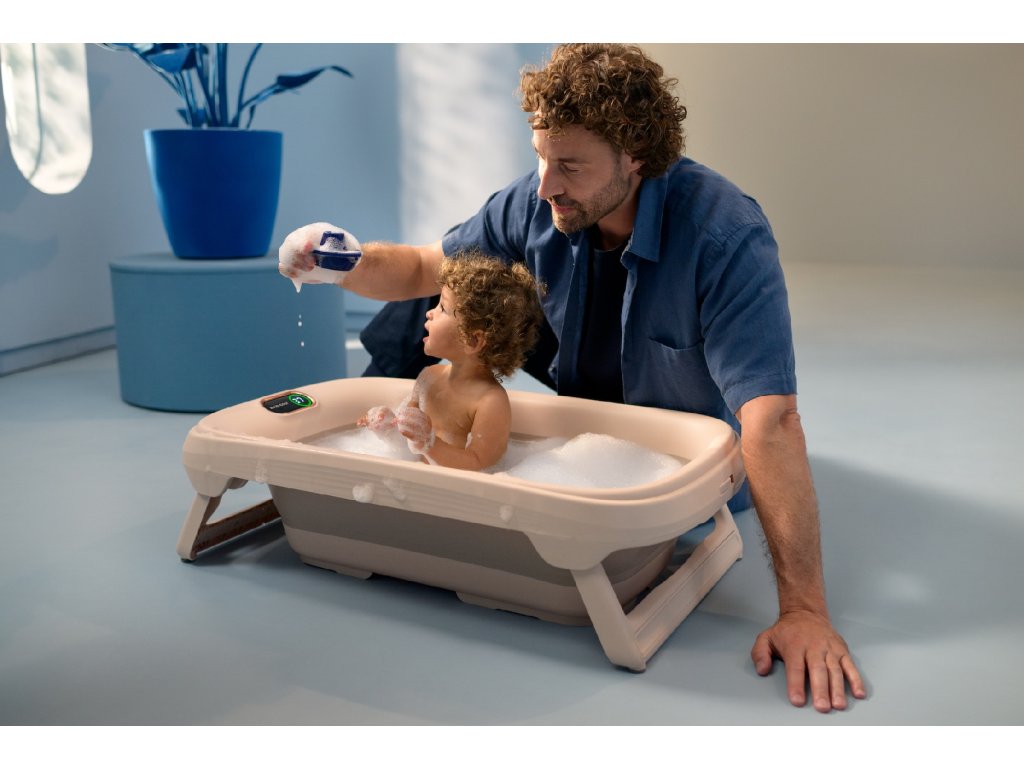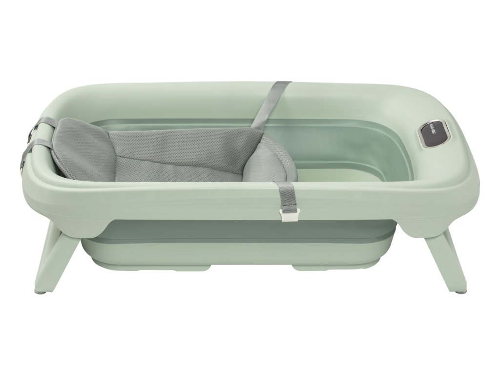 Skládací vanička Maxi-Cosi Indigo Plus je chytrá vanička, která zvládne koupání vašeho dítěte od narození až do 4 let. Vyniká komfortem pro novorozence, přesným hlídáním teploty a skladností – po koupání ji jednoduše složíte naplocho a uklidíte. Pro miminko i batole – bez dokupování dalších řešení Součástí vaničky je vyjímatelná novorozenecká vložka QuickDry, která miminko stabilně podpírá v leže. Jakmile dítě zvládne sedět, vložku jednoduše odejmete a vanička dál slouží jako prostorná vana pro batole. Teplota pod kontrolou Integrovaný teploměr HighSense měří teplotu u dna vaničky, kde bývá voda nejteplejší. Praktický je i barevný indikátor: modrá = studená červená = horká zelená = ideální 35–38 °C Stabilní a pohodlná Vanička má měkkou silikonovou podložku s protiskluzem, aby dítě během koupání neklouzalo. Stabilitu zajišťují protiskluzové prvky na nohách. Rychlé použití, rychlý úklid Indigo Plus má skládací konstrukci s výsuvnými nohami – připravená je během chvilky a po koupání ji snadno složíte. Vodu vypustíte přes velký výpustný otvor a vaničku můžete pověsit za integrovaný háček, aby rychle uschla. Hlavní výhody použití od narození do 4 let vyjímatelná novorozenecká vložka QuickDry integrovaný teploměr HighSense + barevný indikátor bezpečné teploty protiskluzová měkká podložka stabilní nohy s protiskluzem skládání naplocho pro snadné skladování velký výpustný otvor pro rychlé vypuštění vody integrovaný háček na zavěšení a sušení hladké materiály pro snadné čištění moderní design do koupelny Rozměry (d × š × v): 86 × 51 × 24 cm Vhodné pro děti od narození do 4 let.Doplňkové parametry