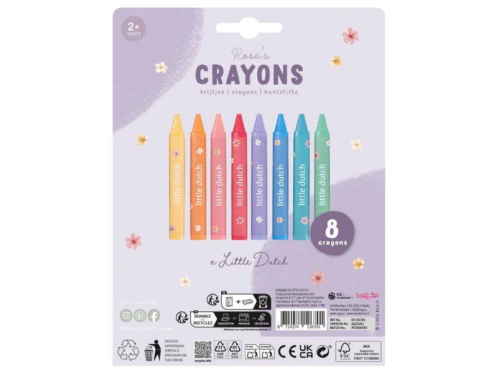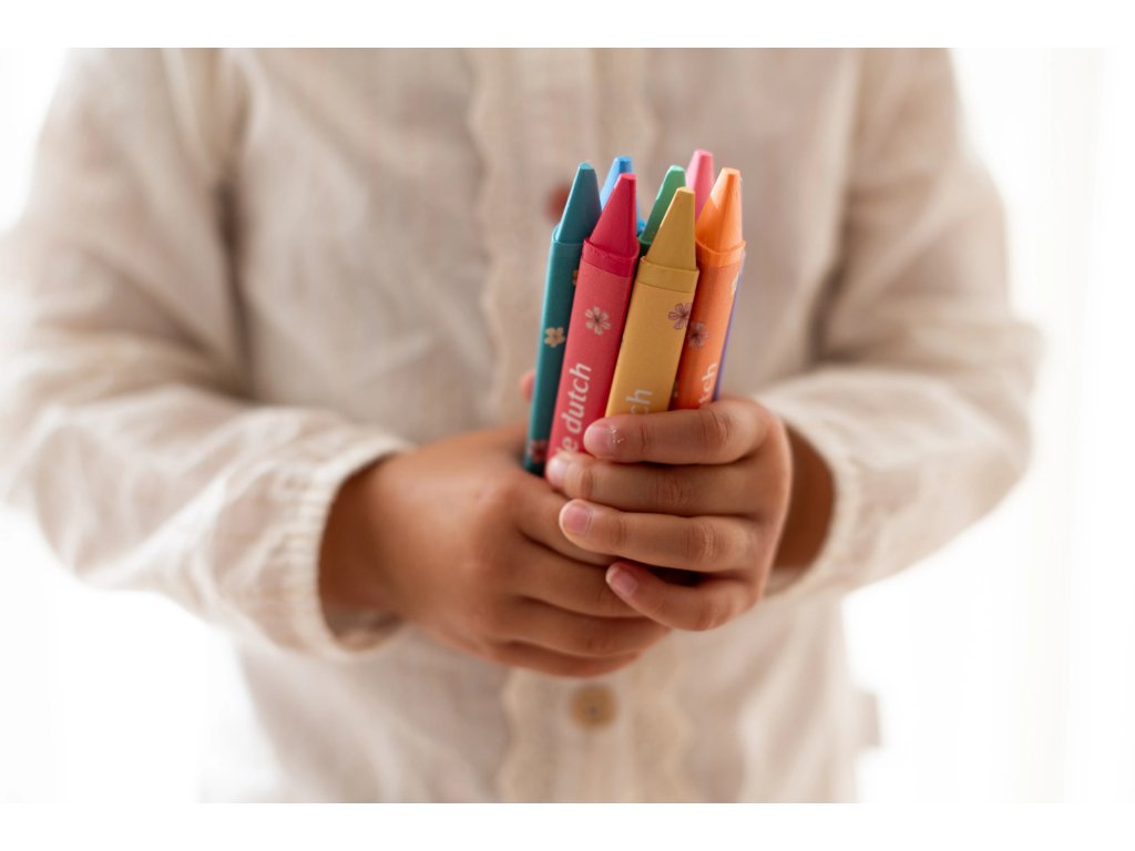 Nechte své dítě objevovat svět barev s touto Little Dutch sadou 8 veselých voskovek v jemných odstínech. Trojúhelníkový tvar skvěle padne do malých dětských rukou, podporuje správný úchop a rozvíjí jemnou motoriku. Ideální pro první kreslení, malování i společné tvoření s rodiči. Voskovky jsou odolné, snadno se drží a díky svým měkkým barvám vytvářejí krásné, syté tahy. Perfektní volba pro malé umělce, kteří právě začínají objevovat radost z tvoření. Skvěle ladí s ostatními výtvarnými doplňky Little Dutch. Vhodné pro děti od 2 let.Doplňkové parametry