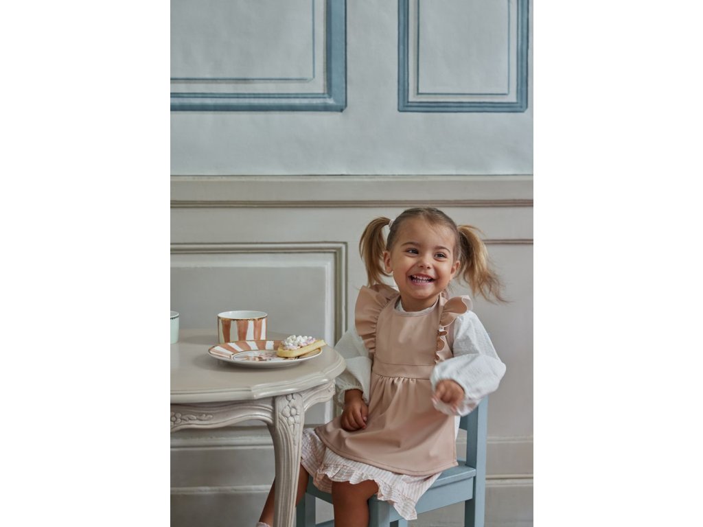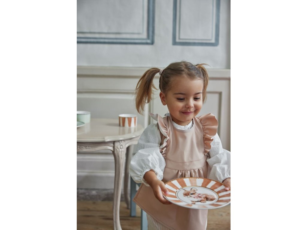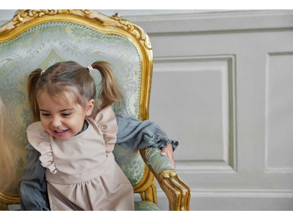 Roztomilá zástěrka z nové jarní kolekce. Potažena je pogumovanou vrstvičkou, aby byla snadno opláchnutelná, stíratelná a rychle čistá po každém použití. Zástěrka se snadno nandavá a sundavá díky uzavírání na suchý zip. A navíc jí lze zavázat kolem pasu. Vyrobeno bez použití PVC a ftalátů.