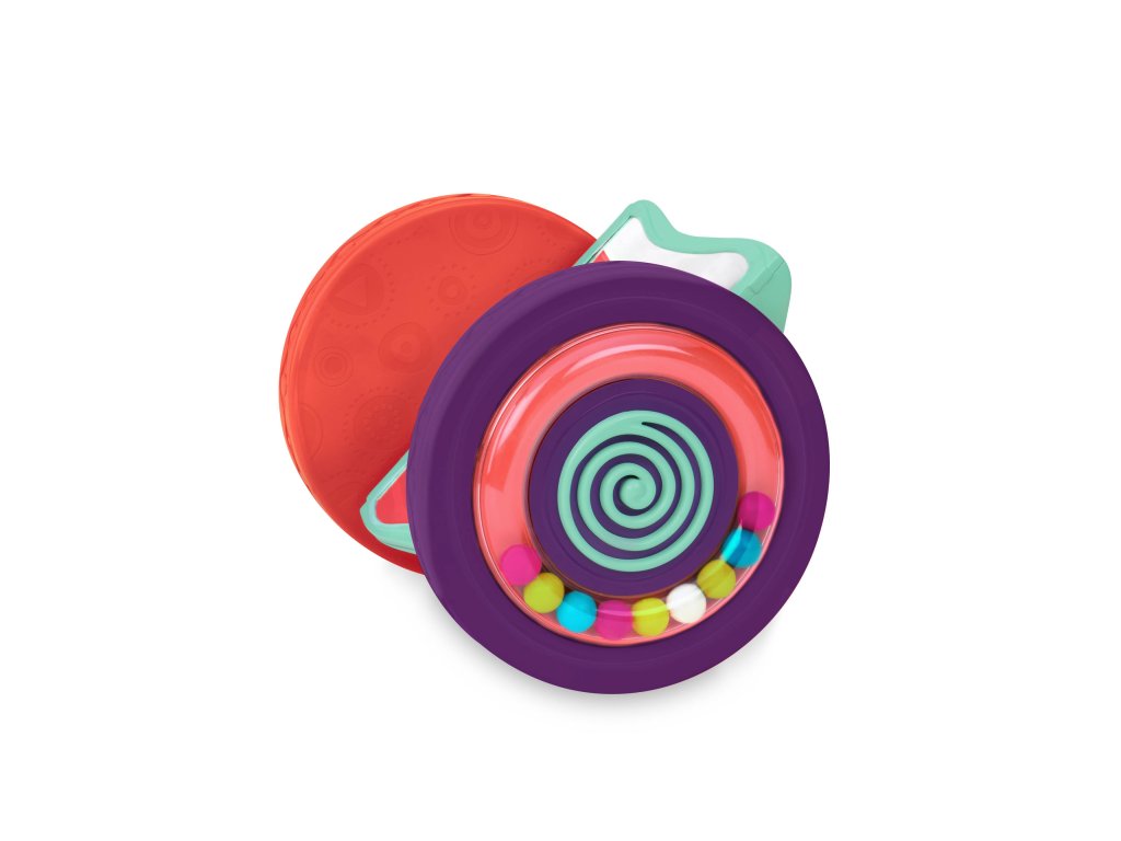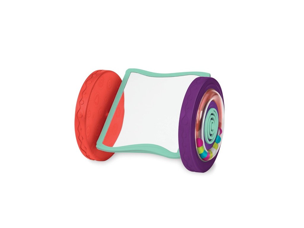 Válec při kutálení po po podlaze chrastí a zrcátko zůstává ve svislé poloze. Podněcuje dítě k lezení a rozvíjí tak jeho motorické dovednosti. Rozměry: 24×16,5×19 cm. Vhodné pro děti od narození do 2 let.Doplňkové parametry